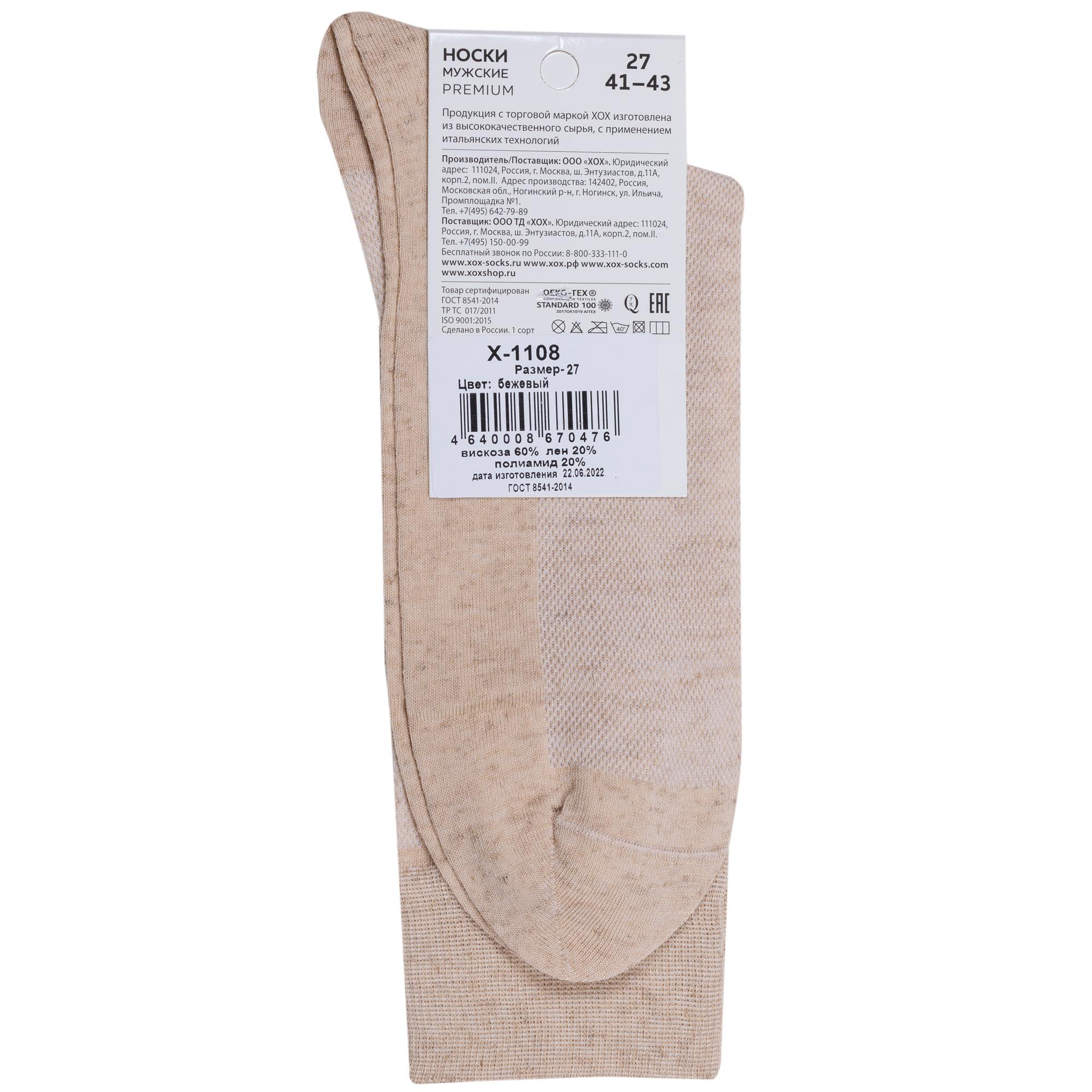 Мужские носки из вискозы и льна в сеточку ХОХ X-1108, БЕЖЕВЫЕ