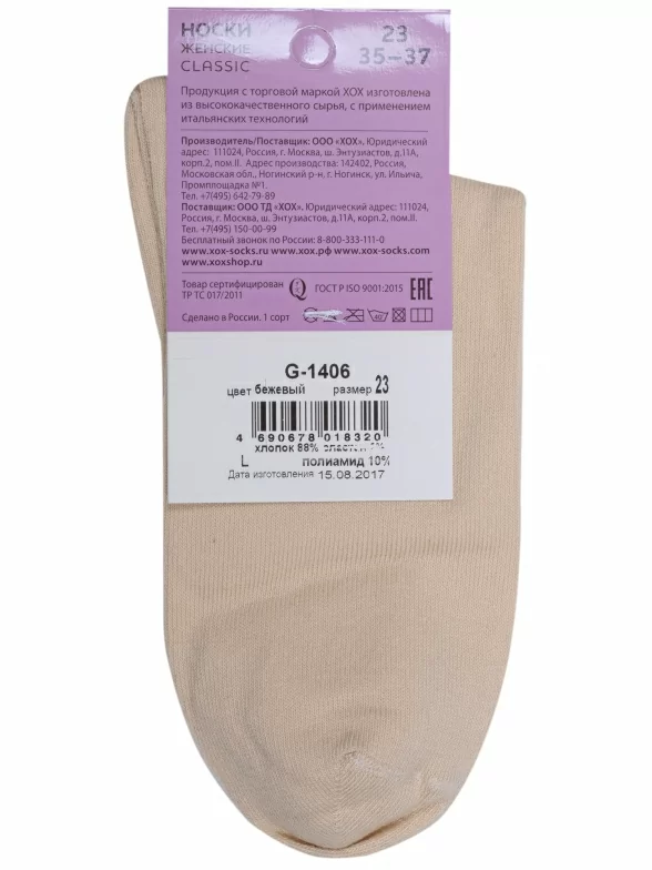 Женские носки без резинки ХОХ, G-1406, БЕЖЕВЫЕ