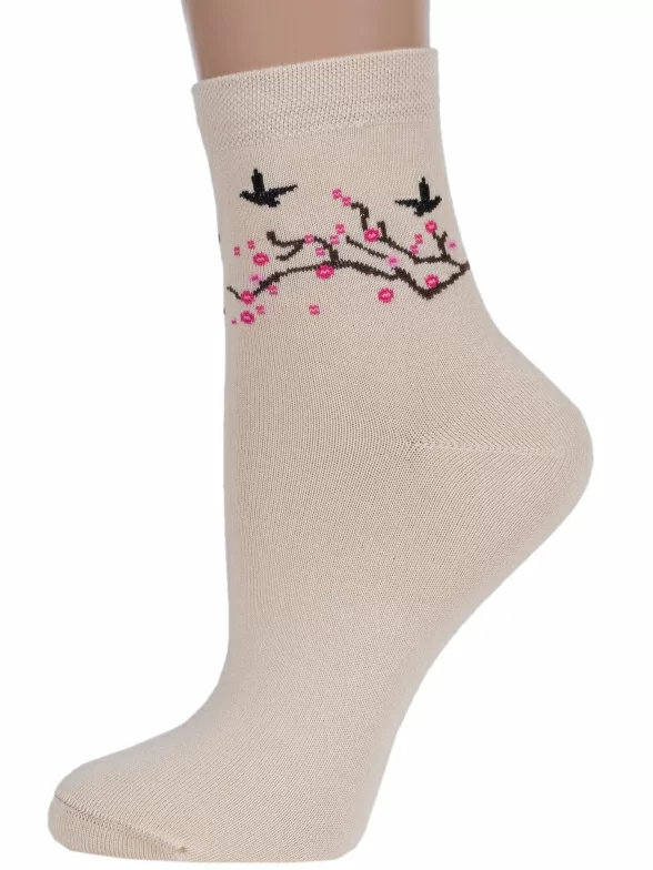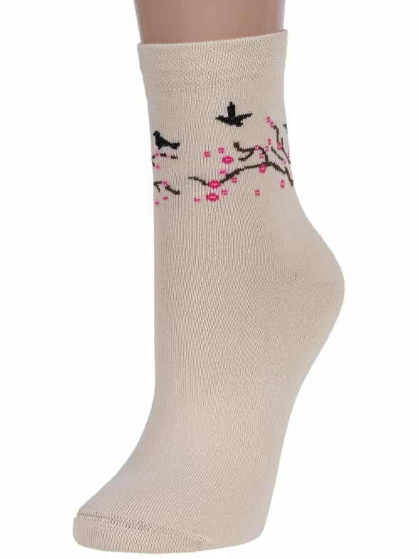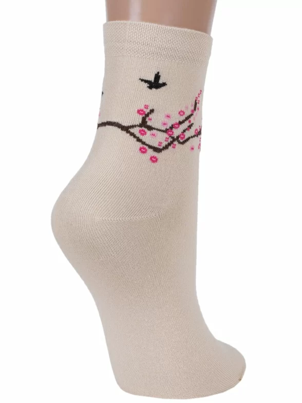 Для того чтобы увидеть цветение сакуры больше не нужно ехать в Японию. Достаточно купить эти носки! Модель, украшенная нежным рисунком, сделана из мягкого хлопка с добавлением полиамида и эластана.