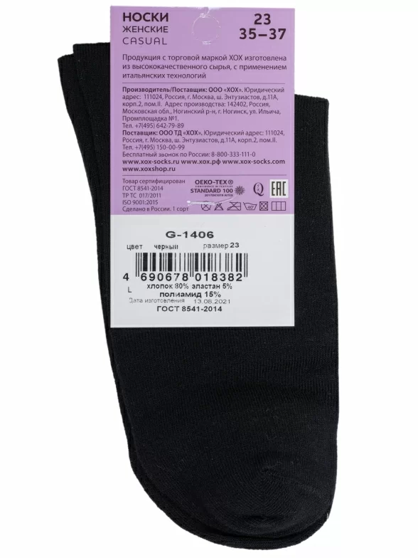 Женские носки без резинки ХОХ, G-1406, ЧЕРНЫЕ