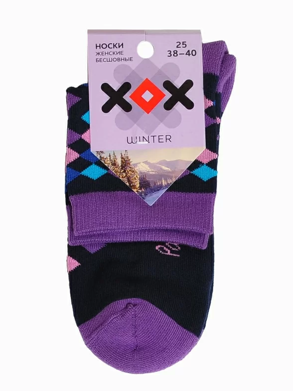 Женские носки с махровым следом ХОХ, GZ-3R8, ЧЕРНО-ФИОЛЕТОВЫЕ