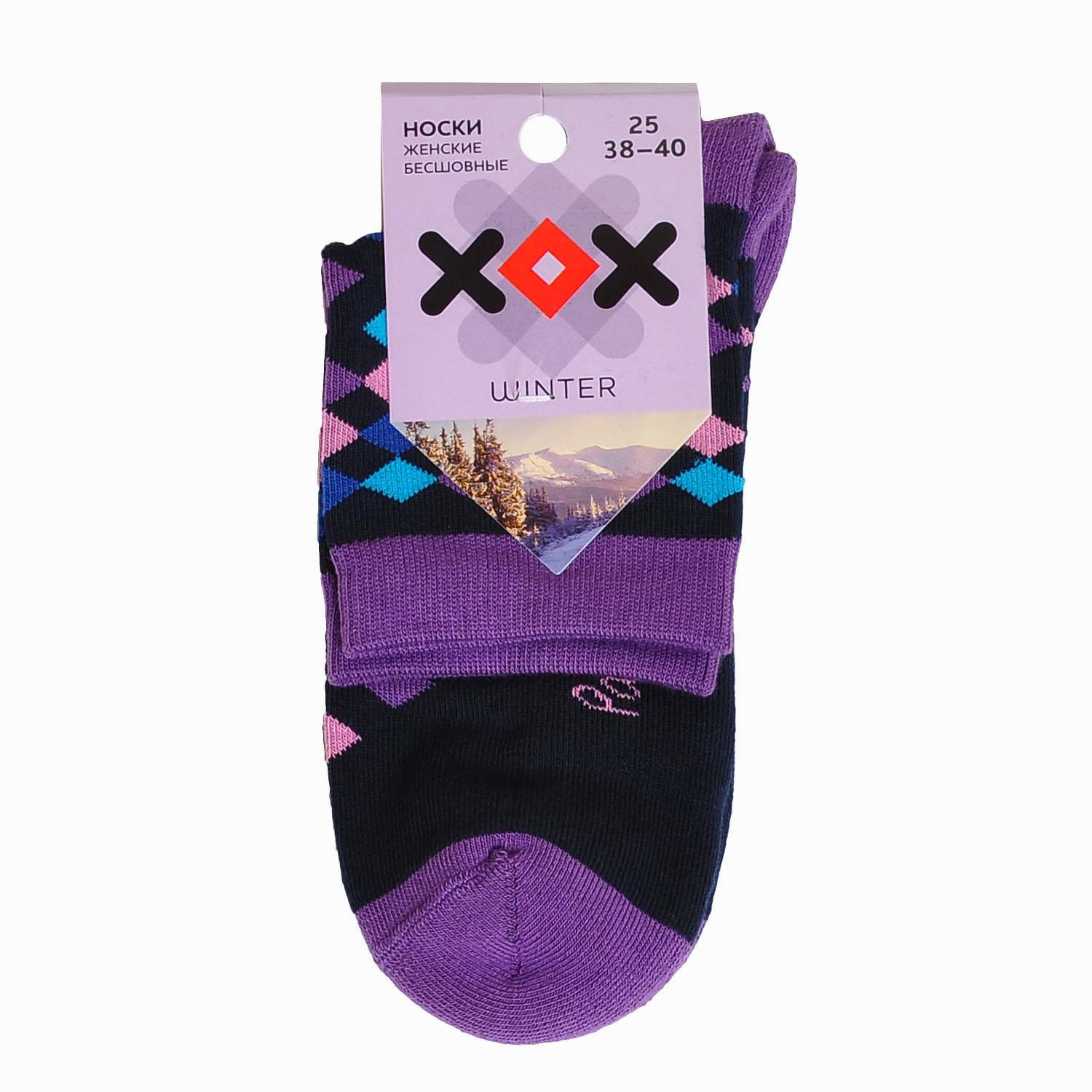 Женские носки с махровым следом ХОХ GZ-3R8, ЧЕРНО-ФИОЛЕТОВЫЕ
