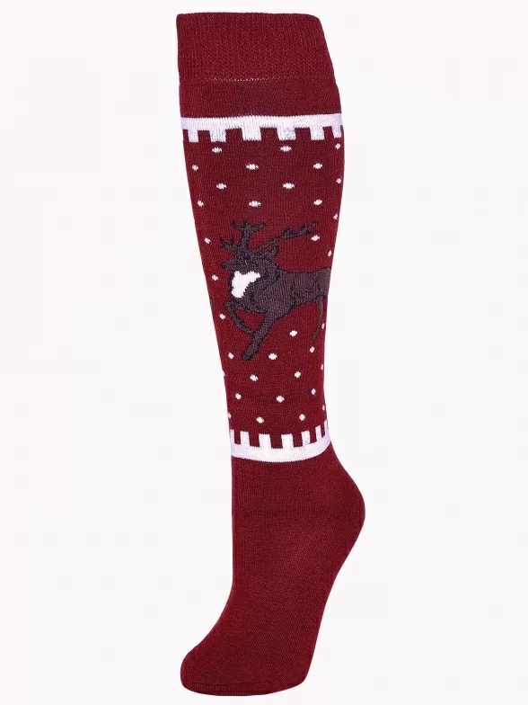 Зимние гольфы с жаккардовым рисунком с изображением оленя для женщин. Отлично сочетаются с зимними образами и одеждой. К тому же они придадут дополнительный комфорт и тепло благодаря акрилу, а долго прослужат благодаря полиамиду и эластану.