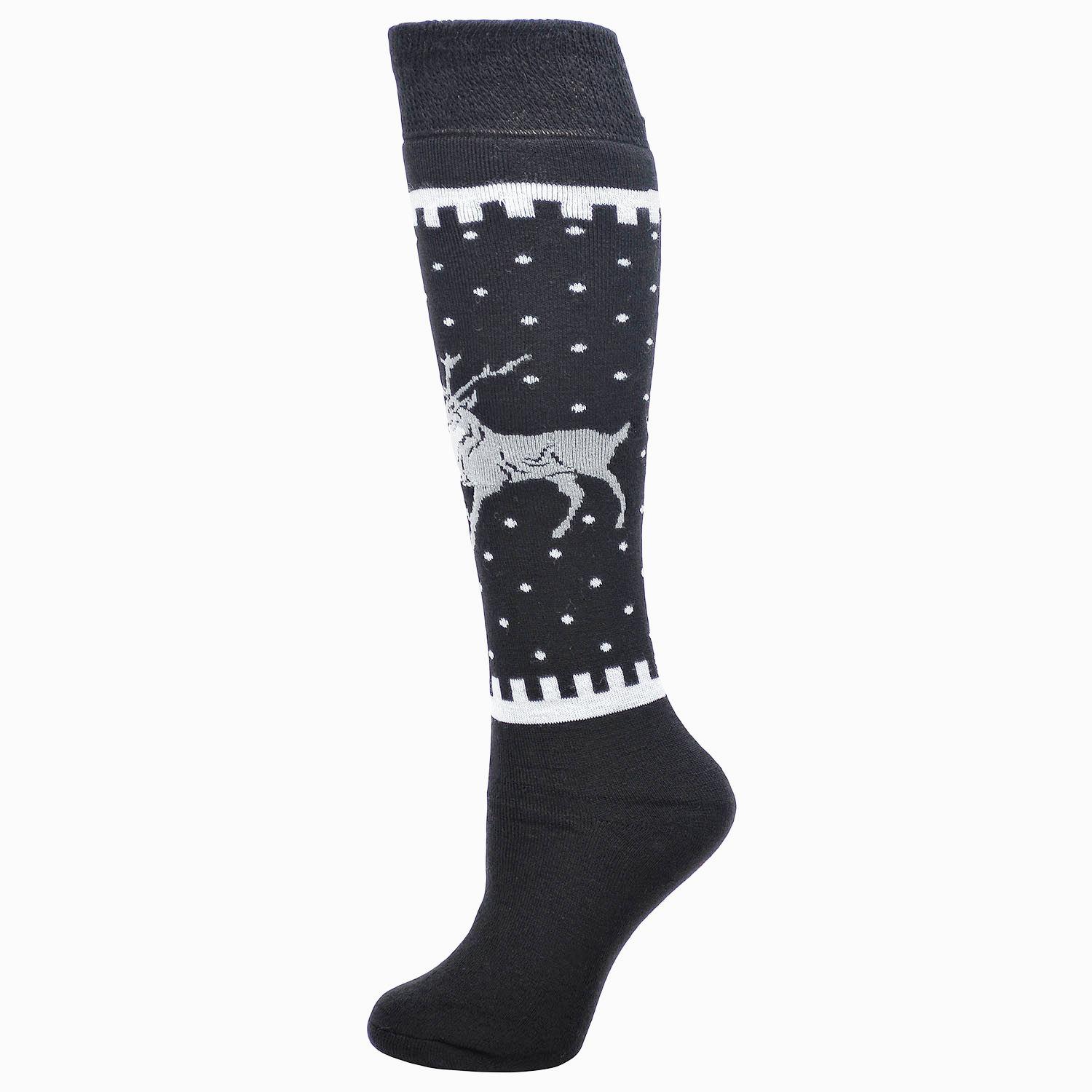 Зимние гольфы с жаккардовым рисунком с изображением оленя для женщин. Отлично сочетаются с зимними образами и одеждой. К тому же они придадут дополнительный комфорт и тепло благодаря акрилу, а долго прослужат благодаря полиамиду и эластану.