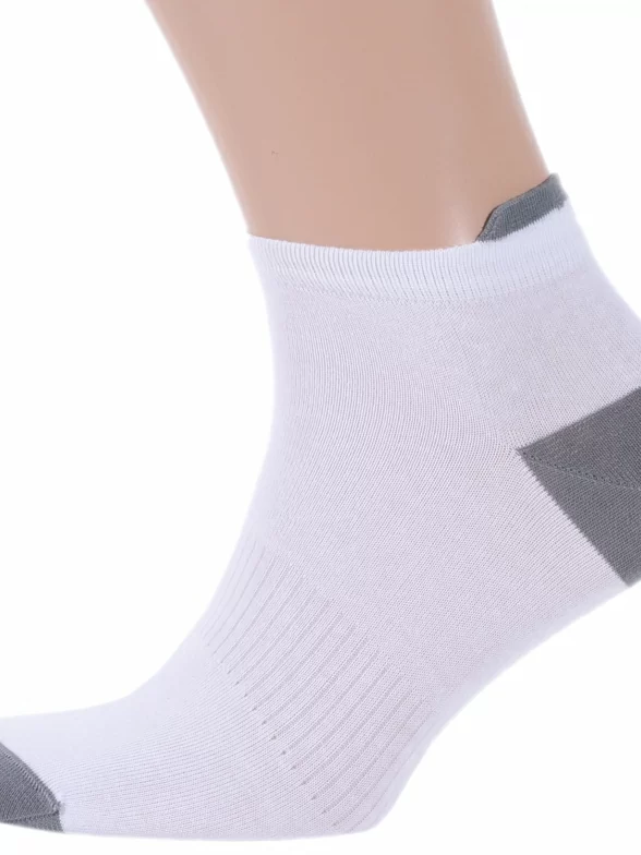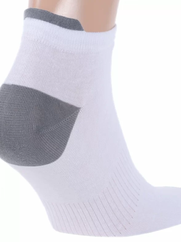 Короткие мужские спортивные носки с компрессионными зонами, снижающими эффект усталости в ногах. Их отличительная особенность – специальные ярлыки, предотвращающие натирание задниками обуви. Носки связаны из качественной хлопковой пряжи и отличаются усиленными мыском и пяткой.