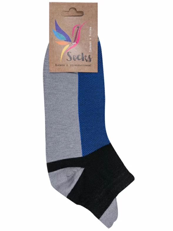 Круглогодичные короткие носки унисекс, цвет многоцветные (мультиколор), спортивные, в сеточку, шов обычный (не бесшовные), принт (рисунок): спортивные, с узором, состав: 80% хлопок, 18% полиамид, 2% эластан, арт. А216. Производитель «ООО Альтаир, г. Орск, Оренбургская обл, Россия» под брендом «Альтаир».