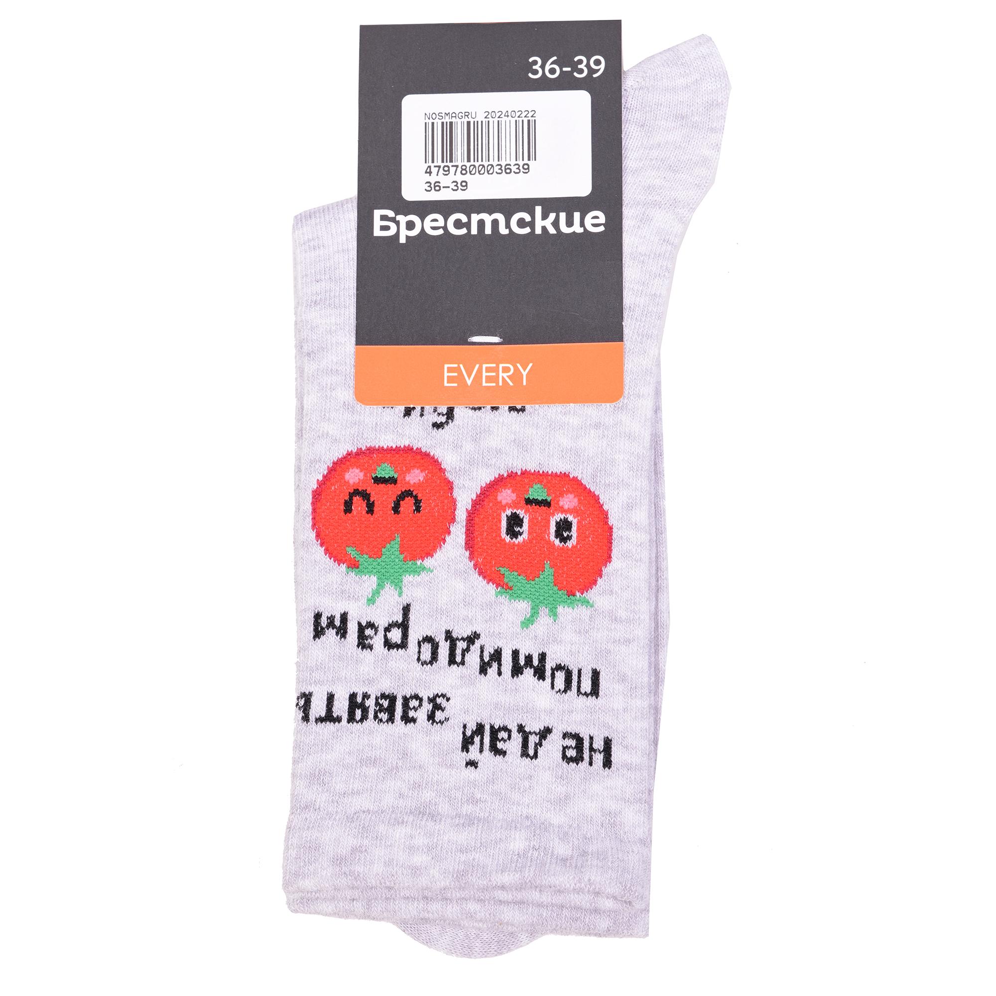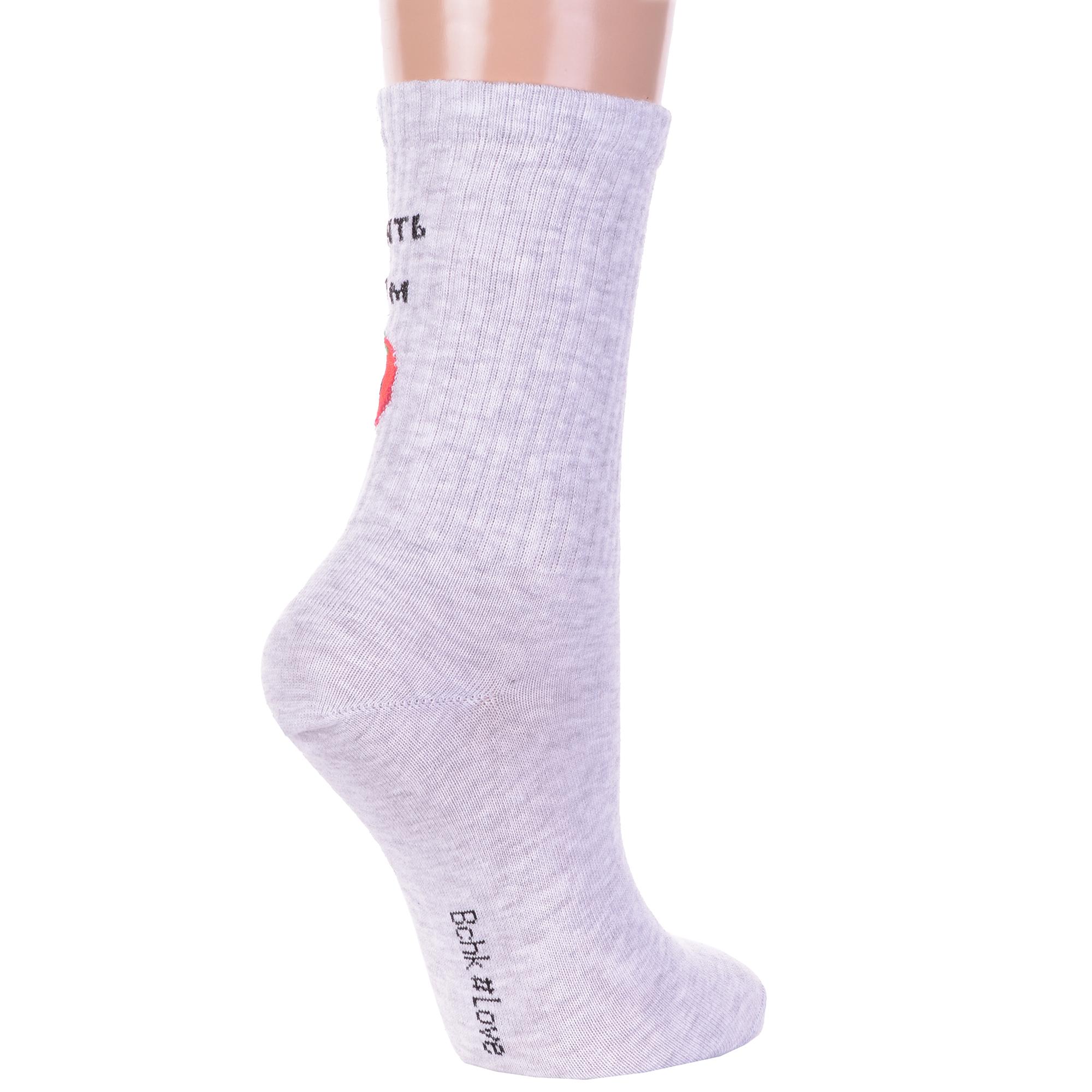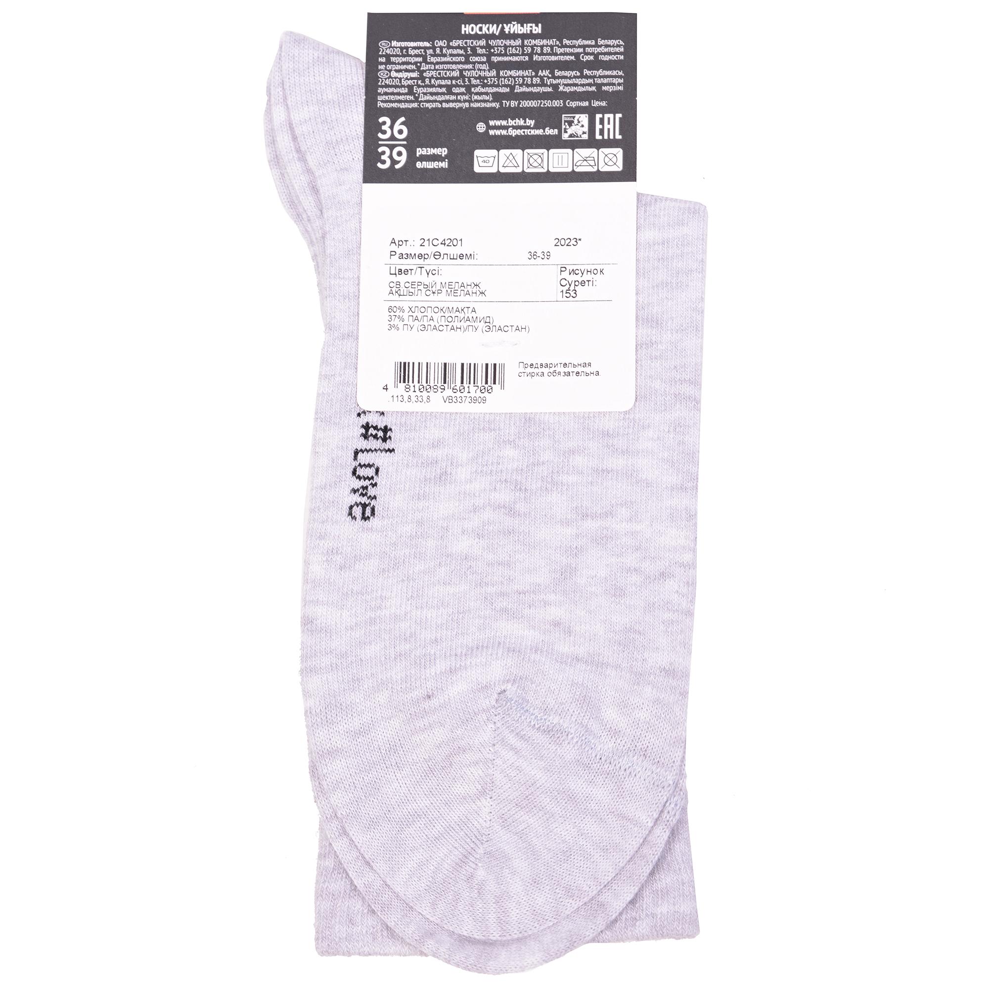 Круглогодичные средней длины носки унисекс, цвет светло-серый, спортивные, повседневные, возможно бесшовные, принт (рисунок): с узором, сердечки / поцелуи / любовь, надписи, состав: 60% хлопок, 37% полиамид, 3% эластан, арт. 21С4201. Производитель «Брестский чулочный комбинат ОАО, Беларусь» под брендом «Брестские (бчк)».