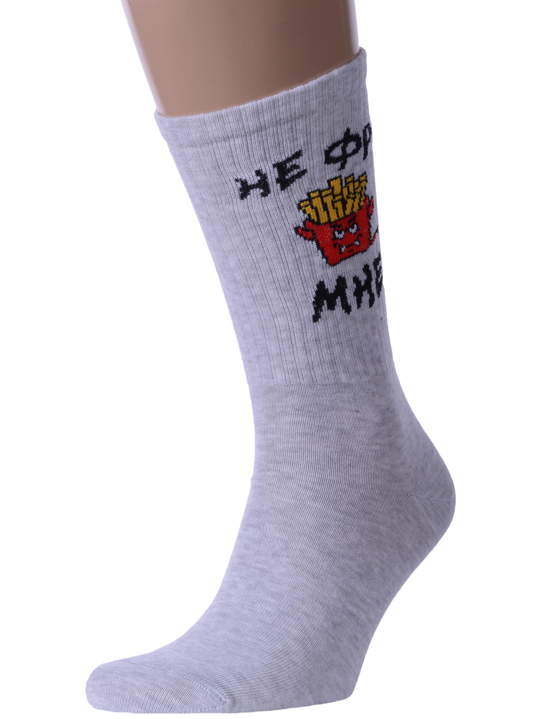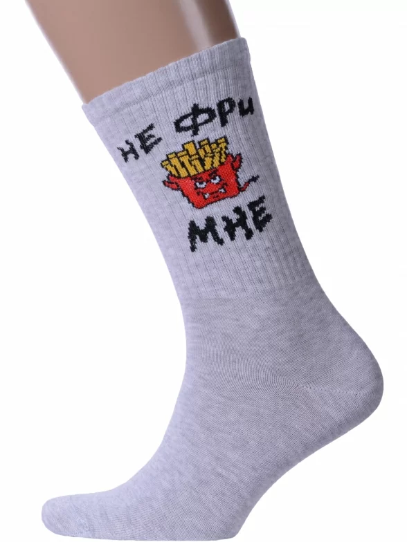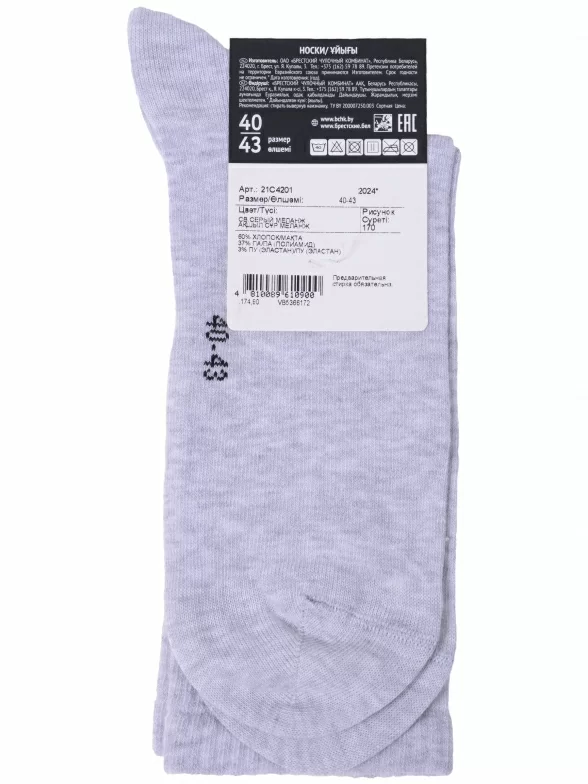 Круглогодичные средней длины носки унисекс, цвет серый, спортивные, шов обычный (не бесшовные), принт (рисунок): надписи, в рубчик, состав: 60% хлопок, 37% полиамид, 3% эластан, арт. 21С4201. Производитель «Брестский чулочный комбинат ОАО, Беларусь» под брендом «Брестские (бчк)».