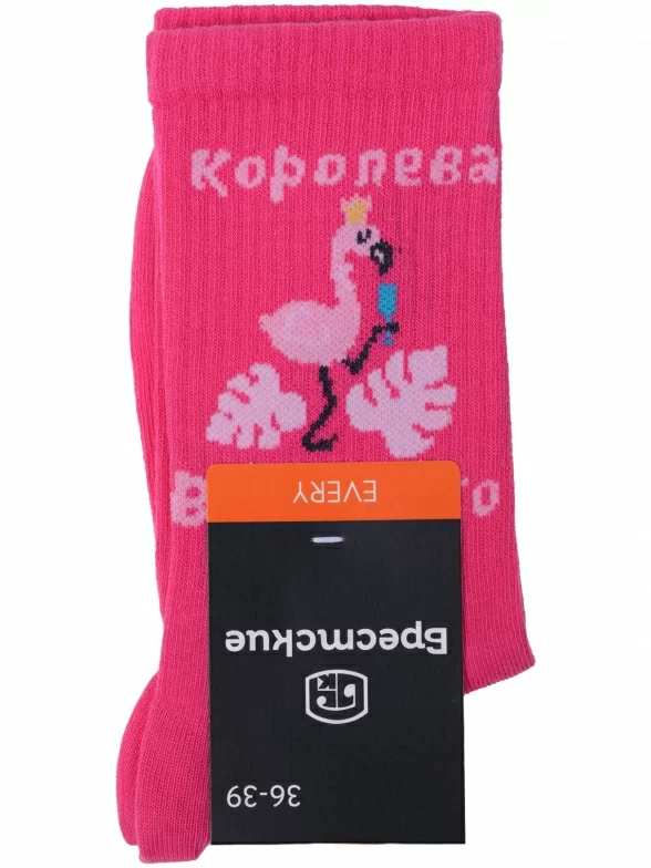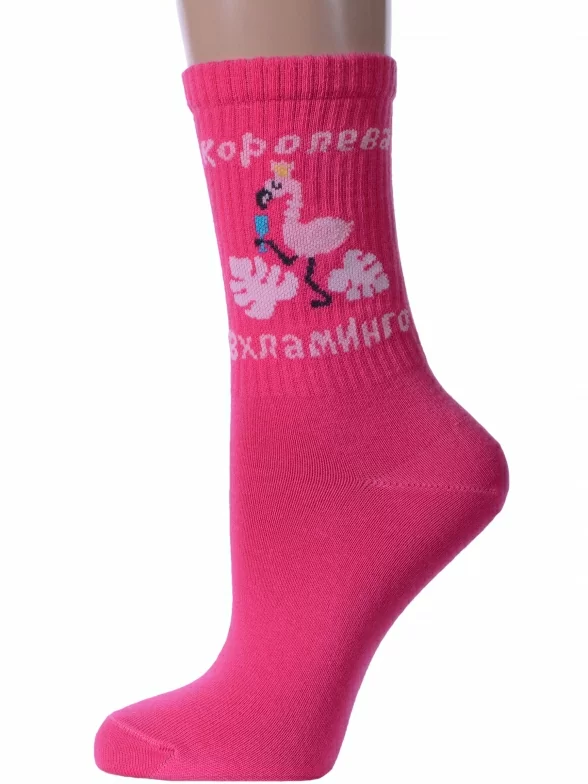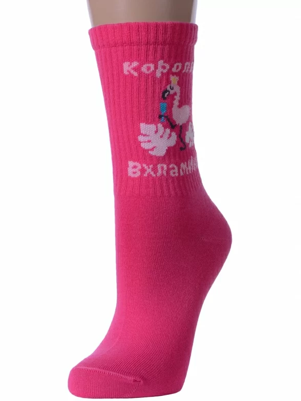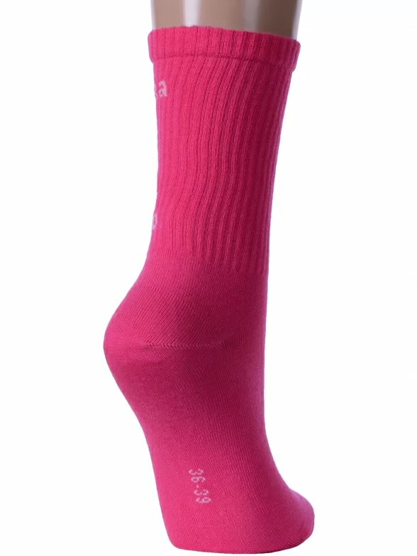 Круглогодичные средней длины женские носки, цвет фуксия, спортивные, шов обычный (не бесшовные), принт (рисунок): надписи, в рубчик, состав: 60% хлопок, 37% полиамид, 3% эластан, арт. 21С4201. Производитель «Брестский чулочный комбинат ОАО, Беларусь» под брендом «Брестские (бчк)».