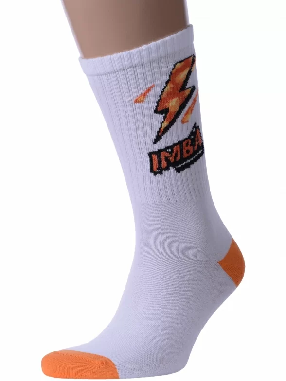 Круглогодичные средней длины носки унисекс, цвет белый, спортивные, шов обычный (не бесшовные), принт (рисунок): надписи, в рубчик, состав: 60% хлопок, 37% полиамид, 3% эластан, арт. 21С4201. Производитель «Брестский чулочный комбинат ОАО, Беларусь» под брендом «Брестские (бчк)».