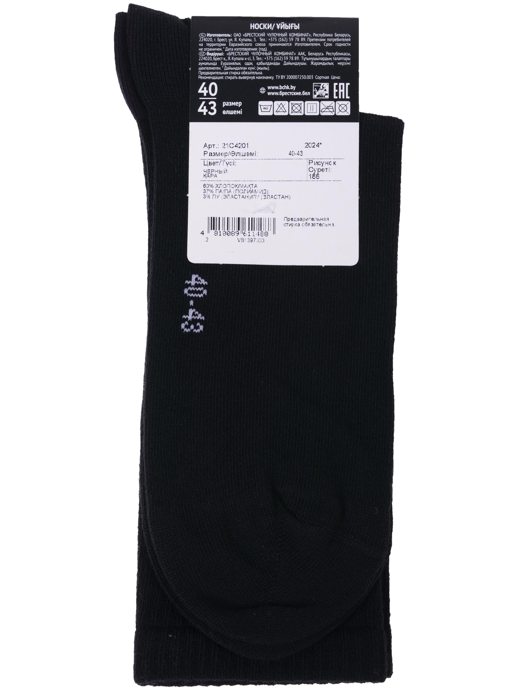 Круглогодичные средней длины носки унисекс, цвет черный, спортивные, шов обычный (не бесшовные), принт (рисунок): надписи, в рубчик, состав: 60% хлопок, 37% полиамид, 3% эластан, арт. 21С4201. Производитель «Брестский чулочный комбинат ОАО, Беларусь» под брендом «Брестские (бчк)».