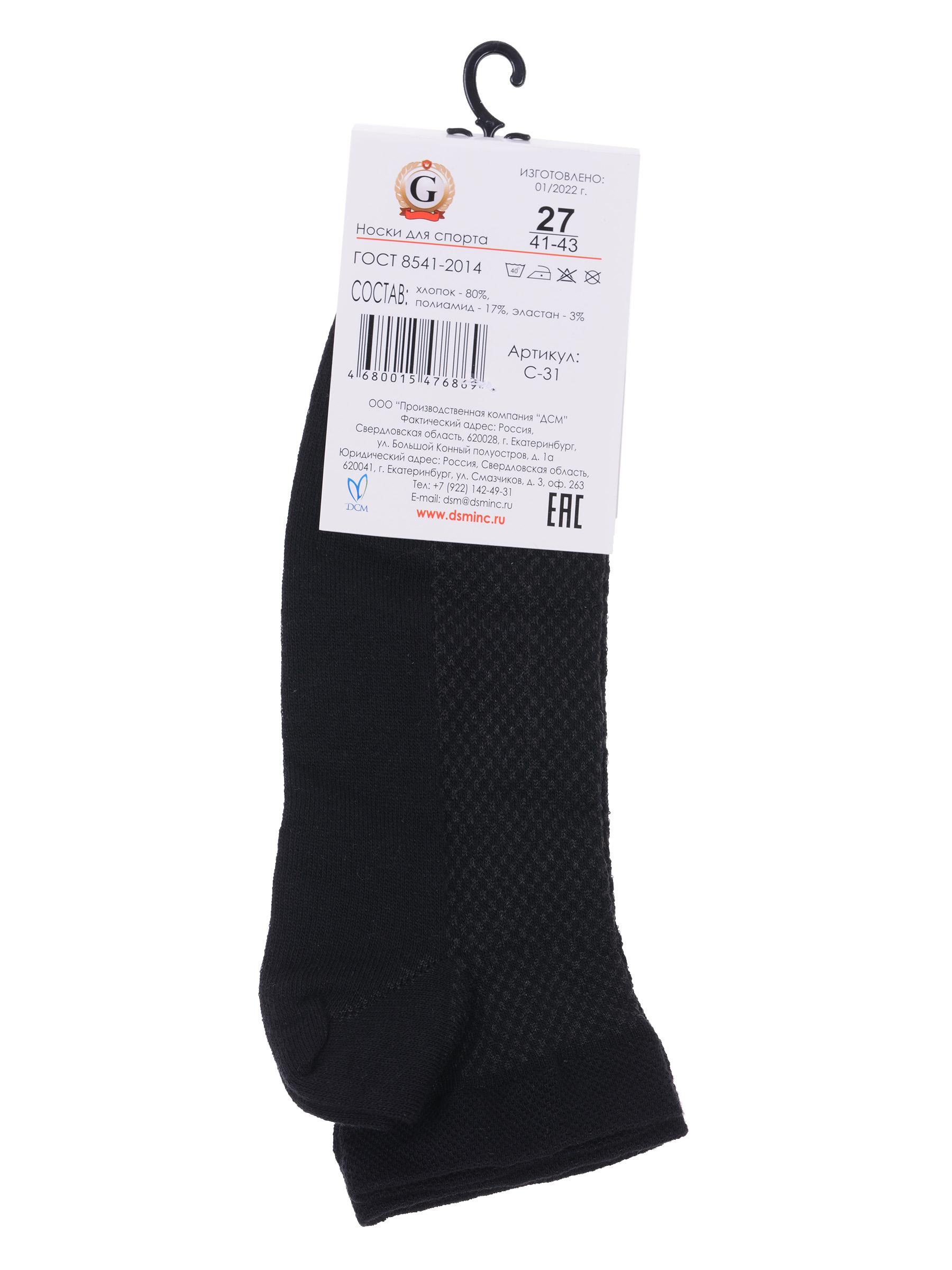 Круглогодичные короткие носки унисекс, цвет черный, спортивные, в сеточку, возможно бесшовные, принт (рисунок): однотонный, без рисунков/узоров, состав: 80% хлопок, 17% полиамид, 3% эластан, арт. С-31. Производитель «ООО Производственная компания "ДСМ", Россия» под брендом «Grand line».