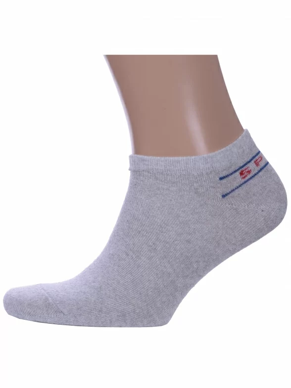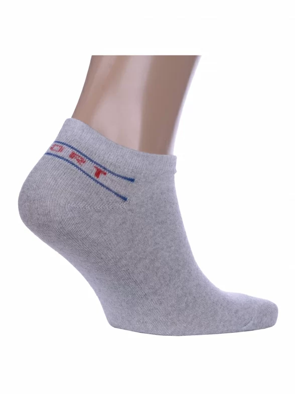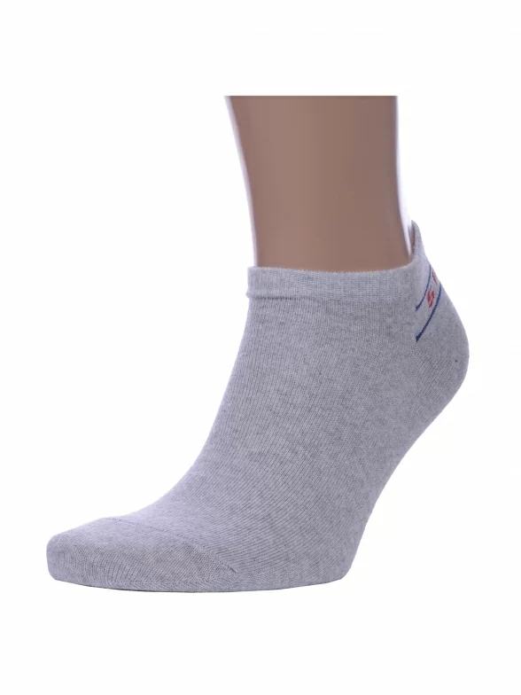 Круглогодичные короткие носки унисекс, цвет светло-серый, спортивные, повседневные, возможно бесшовные, принт (рисунок): надписи, однотонный, небольшой рисунок, состав: 80% хлопок, 17% полиамид, 3% эластан, арт. С-ЖС-21. Производитель «ООО Производственная компания "ДСМ", Россия» под брендом «Grand line».