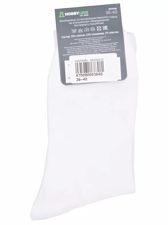 Спортивные носки Hobby Line, нус80159-01-32-03, БЕЛЫЕ