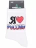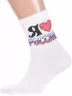 Круглогодичные укороченные носки унисекс, цвет белый, спортивные, повседневные, возможно бесшовные, принт (рисунок): сердечки / поцелуи / любовь, надписи, с узором, состав: 72% хлопок, 25% полиамид, 3% эластан, арт. Нус80159-13-13-01. Производитель «Китай, страна бренда - Россия» под брендом «Hobby line».