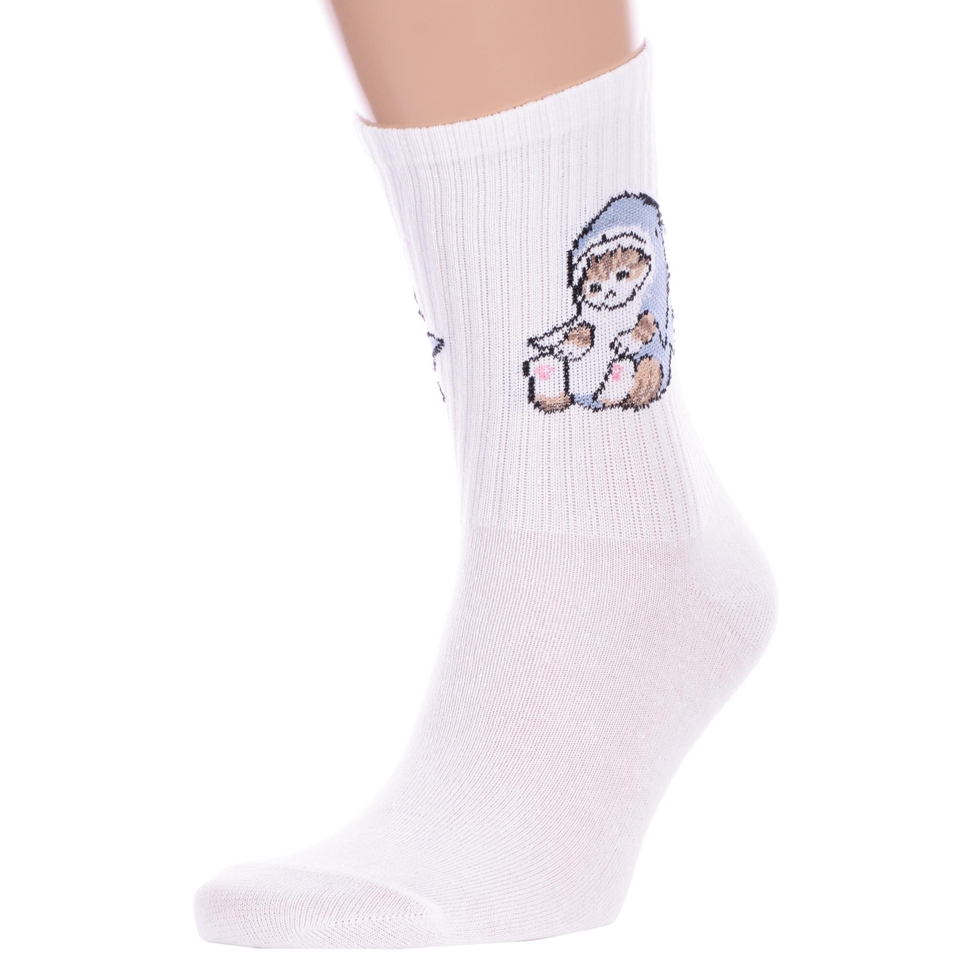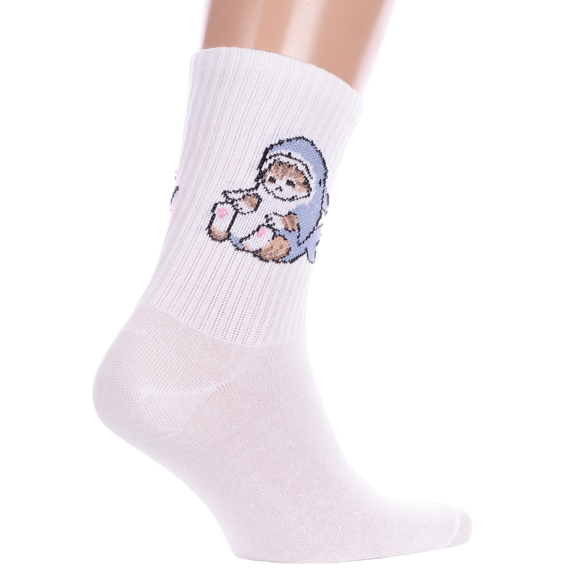 Круглогодичные средней длины носки унисекс, цвет белый, спортивные, повседневные, возможно бесшовные, принт (рисунок): животные, с узором, состав: 75% хлопок, 23% полиамид, 2% эластан, арт. Нус80184. Производитель «Китай, страна бренда - Россия» под брендом «Hobby line».