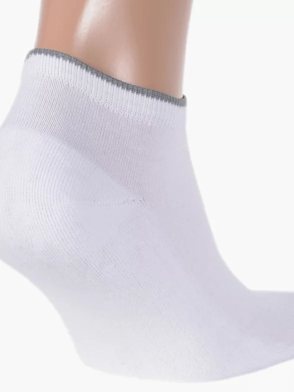 Короткие спортивные носки с махровым следом. Они практически невидимы под низкой спортивной обувью и обеспечивают высокий уровень комфорта. Носки сделаны из качественного хлопкового трикотажа оптимальной плотности. Удобная резинка анатомической формы оформлена контрастной окантовкой.