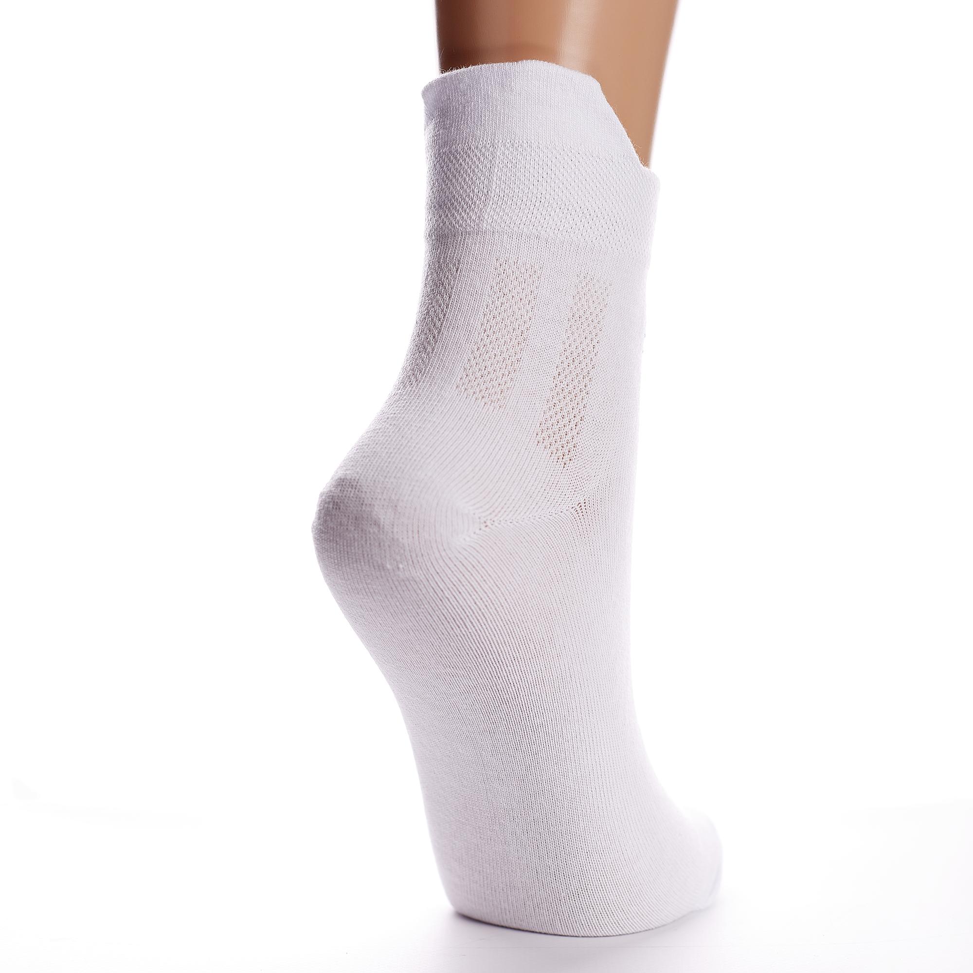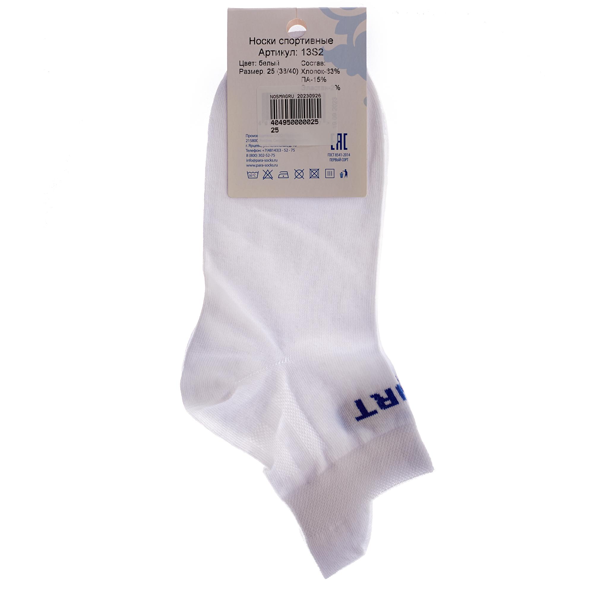 Круглогодичные укороченные носки унисекс, цвет белый, спортивные, в сеточку, шов обычный (не бесшовные), принт (рисунок): спортивные, надписи, однотонный, состав: 83% хлопок, 15% полиамид, 2% эластан, арт. 13S2. Производитель «ПРОМЭКС ООО, Смоленская область, Россия» под брендом «Para socks».