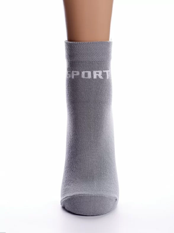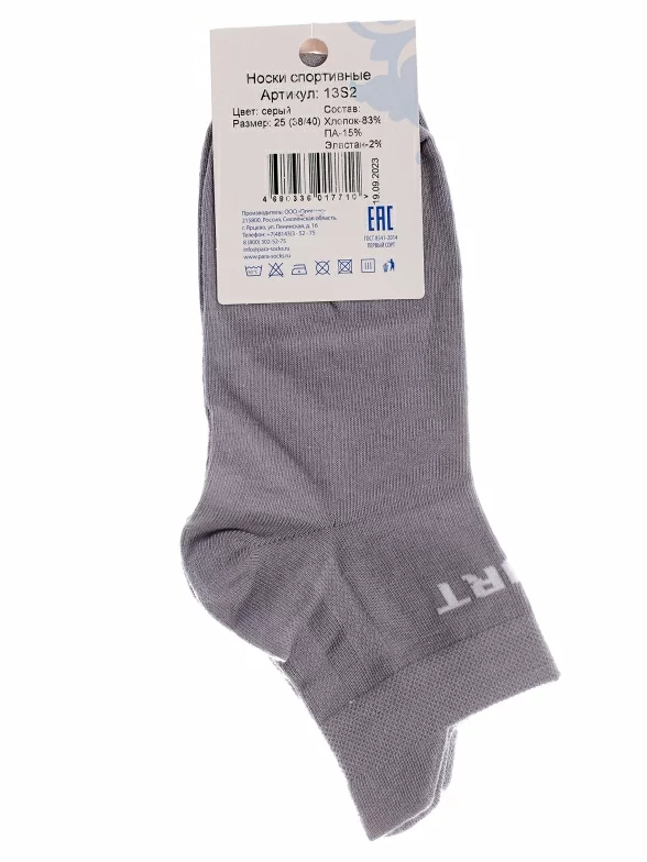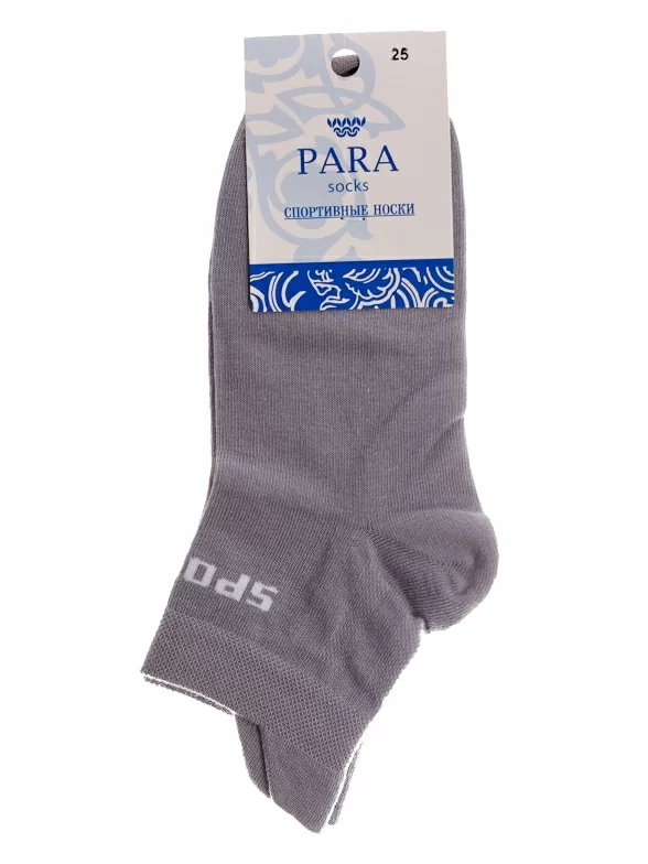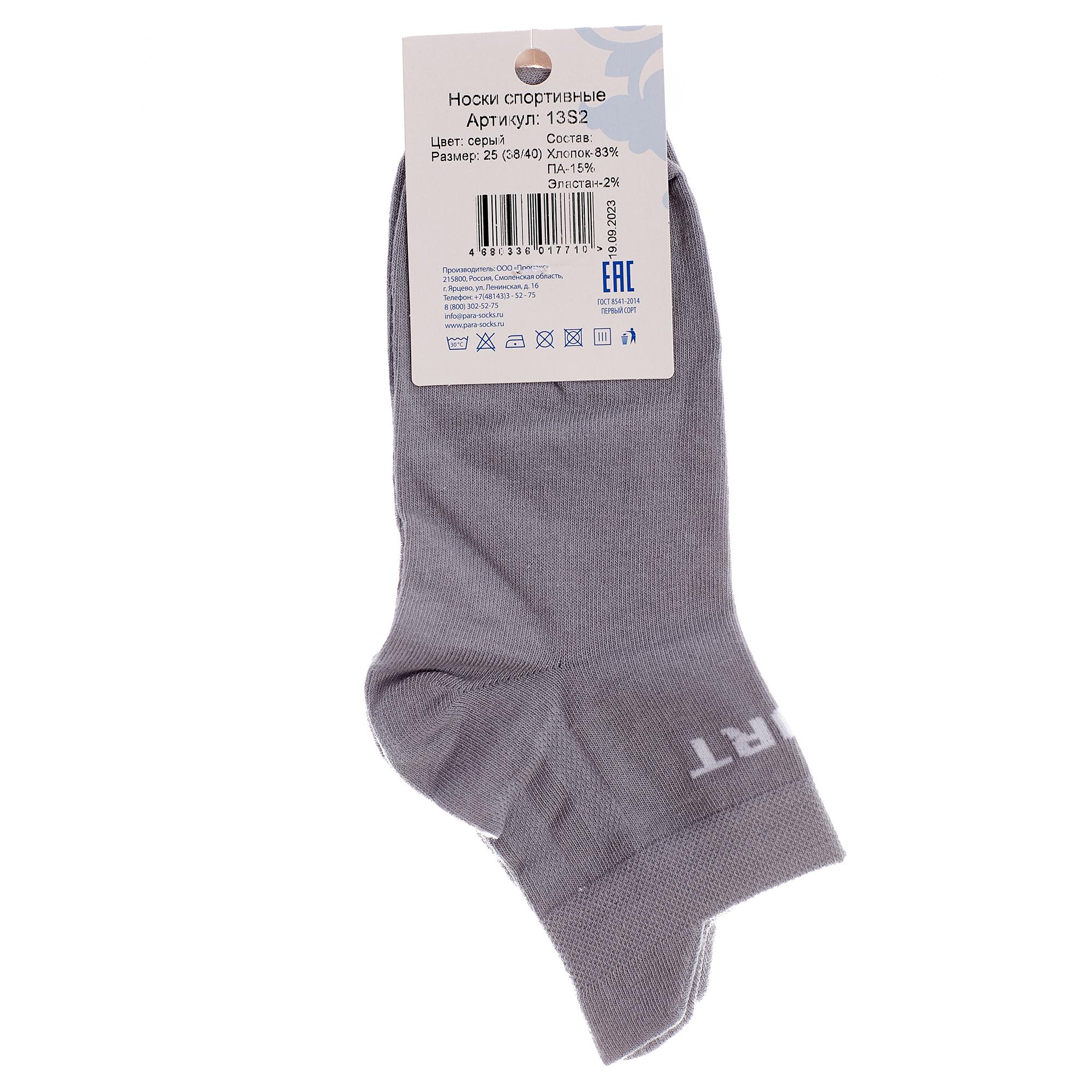 Круглогодичные укороченные носки унисекс, цвет серый, спортивные, в сеточку, шов обычный (не бесшовные), принт (рисунок): спортивные, надписи, однотонный, состав: 83% хлопок, 15% полиамид, 2% эластан, арт. 13S2. Производитель «ПРОМЭКС ООО, Смоленская область, Россия» под брендом «Para socks».
