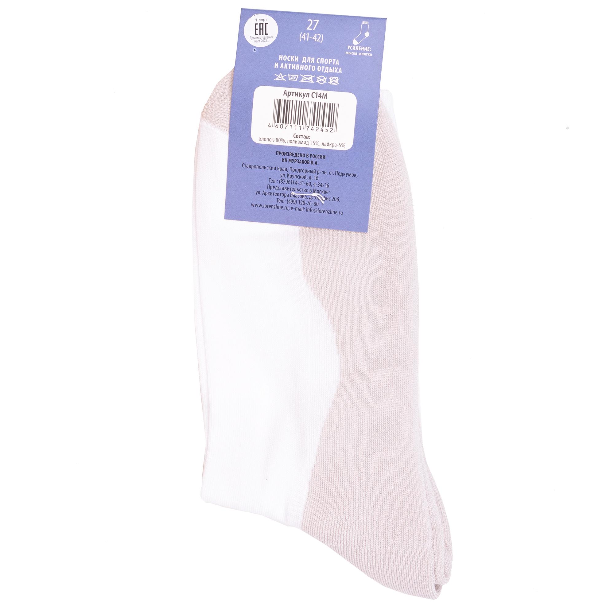 Круглогодичные средней длины унисекс носки, цвет белый-серый, спортивные, с махровым следом, состав: 80% хлопок, 15% полиамид, 5% эластан (лайкра), арт. С14М. Производитель «ИП Мурзаков В.А., Ставропольский край, Россия» под брендом «Lorenzline».
