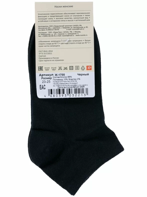 Женские носки RuSocks (Орудьевский трикотаж), Ж-1700, ЧЕРНЫЕ