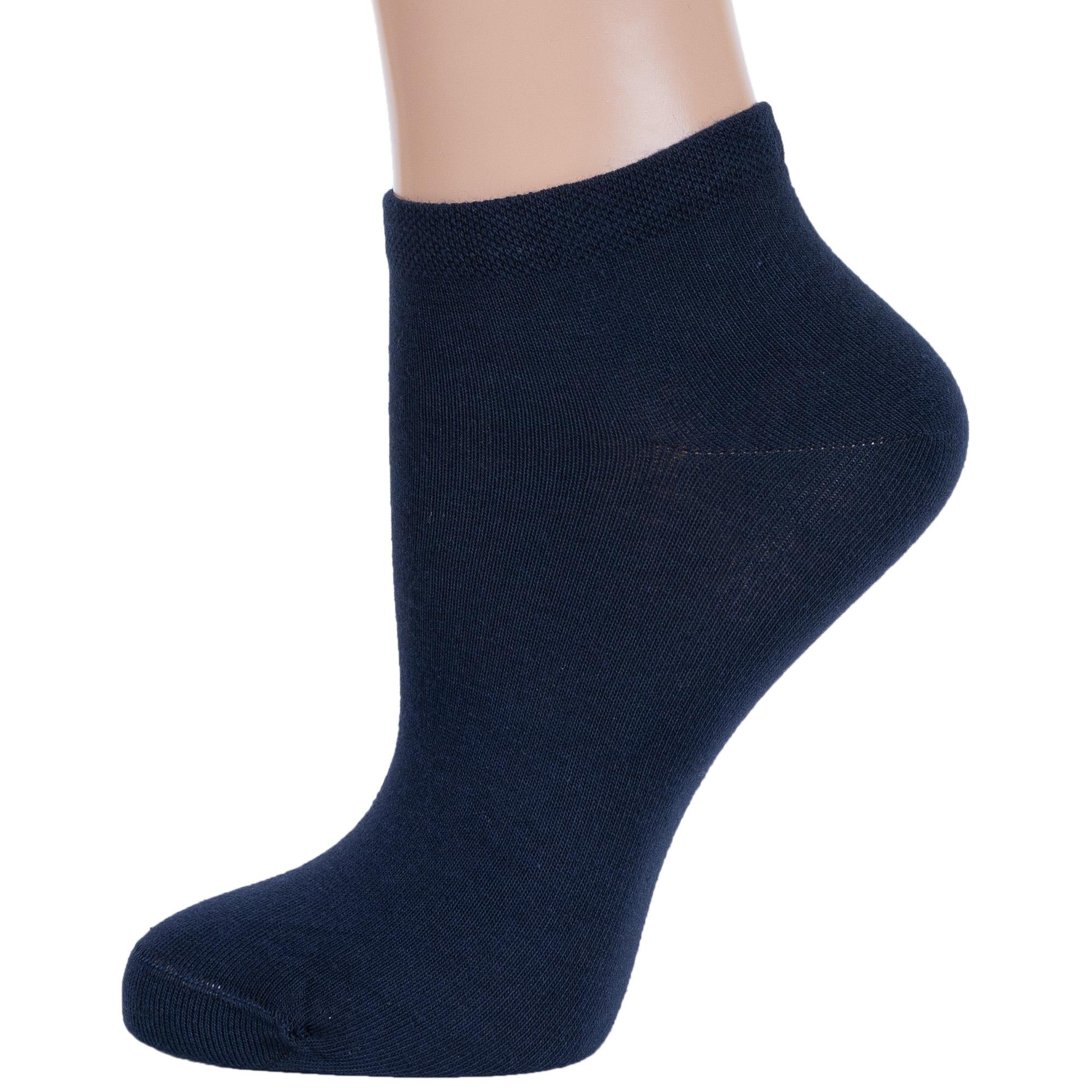 Летние или круглогодичные короткие женские носки, цвет темно-синий, классические, спортивные, шов кеттельный (бесшовная технология), принт (рисунок): однотонный, без рисунков/узоров, состав: 88% хлопок, 10% полиамид, 2% эластан, арт. Ж-1700. Производитель «ООО Орудьевский трикотаж, Россия» под брендом «Rusocks (орудьевский трикотаж)».