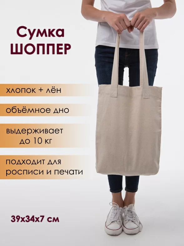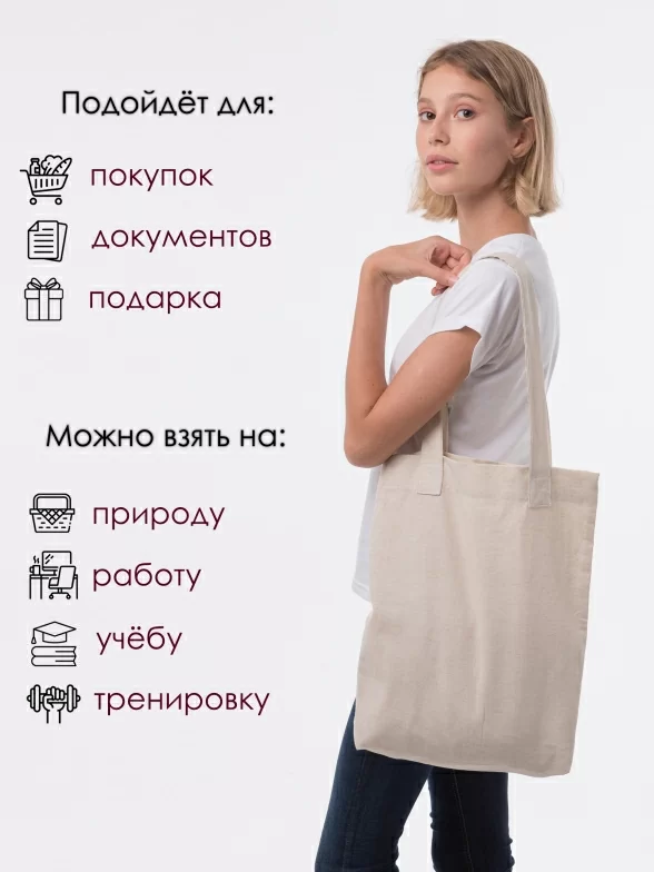 Любой подарок, врученный в такой сумочке, будет приятным вдвойне! Качественная светло-бежевая сумка из хлопково-льняной ткани станет очень полезным аксессуаром и послужит эффектной упаковкой для любого презента!