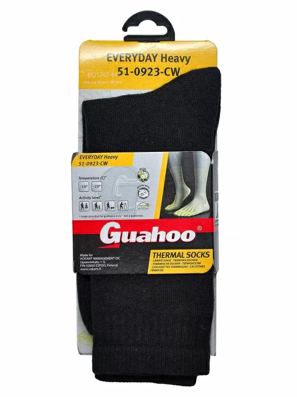 Термоноски Guahoo для использования в холодное время года. Удерживают тепло благодаря входящей в состав шерсти. Носки плотные, при этом мягкие и эластичные. После стирки не теряют форму и яркость цвета. Не покрываются катышками.