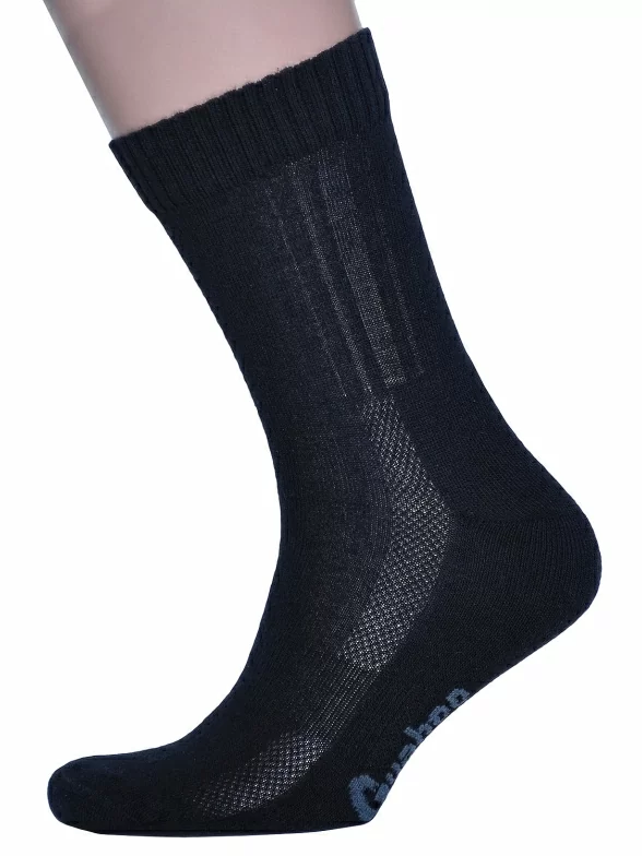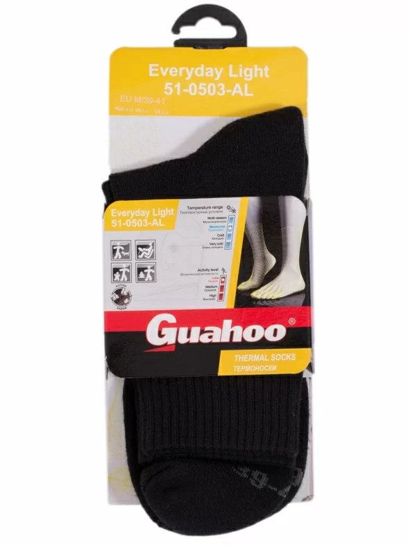 Термоноски Guahoo Everyday из натурального хлопка предназначены для ношения в осенний и зимний сезоны, надёжно защищают стопу от переохлаждения. Особые сеточные зоны обеспечивают дополнительную вентиляцию ноги. Специальная вязка ступни изделия поддерживает свод стопы во время ходьбы.