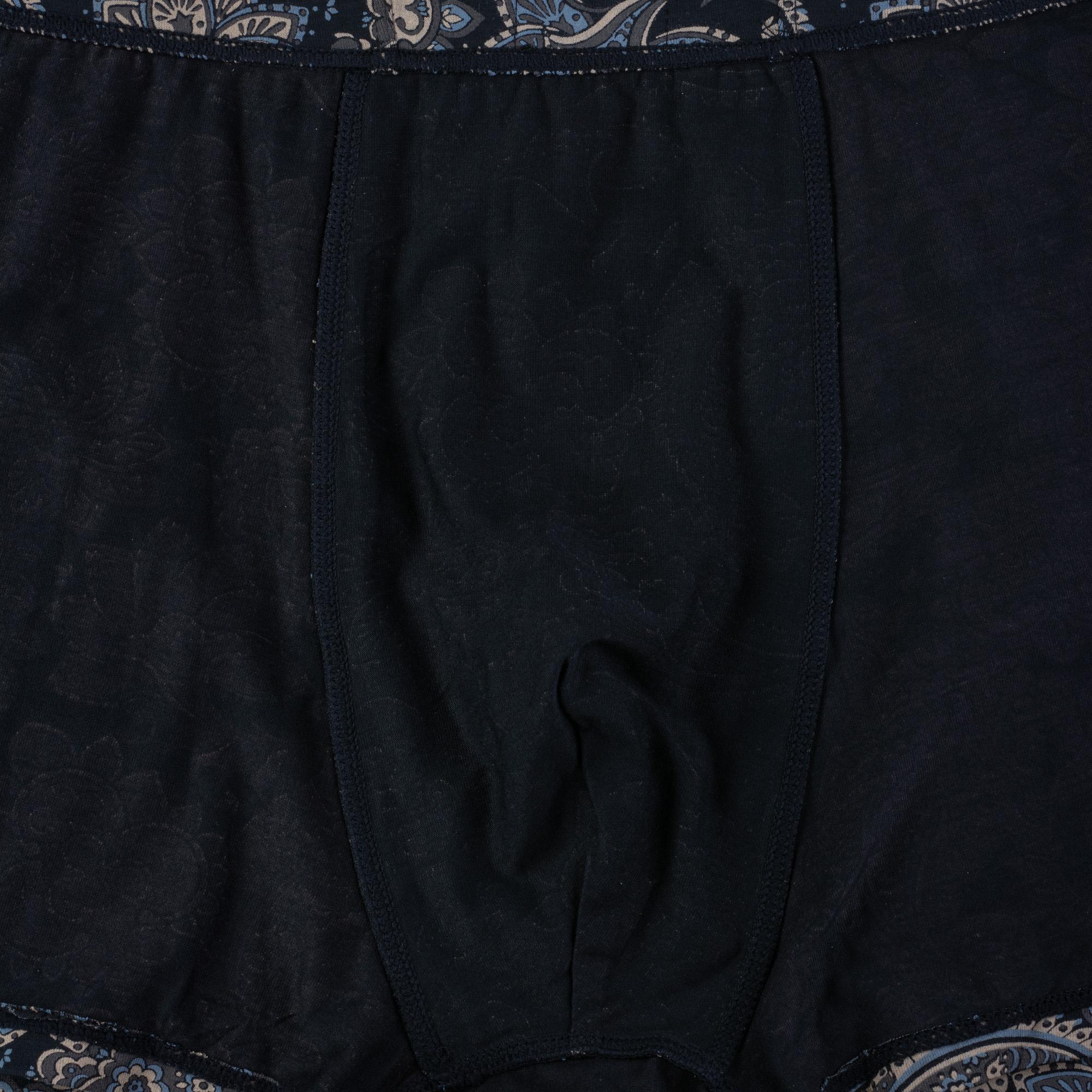 Обтягивающая модель стандартной посадки оформлена растительным орнаментом "пейсли", имеет вшитую эластичную резинку, украшенную аббревиатурой бренда; боковые швы отсутствуют.