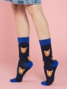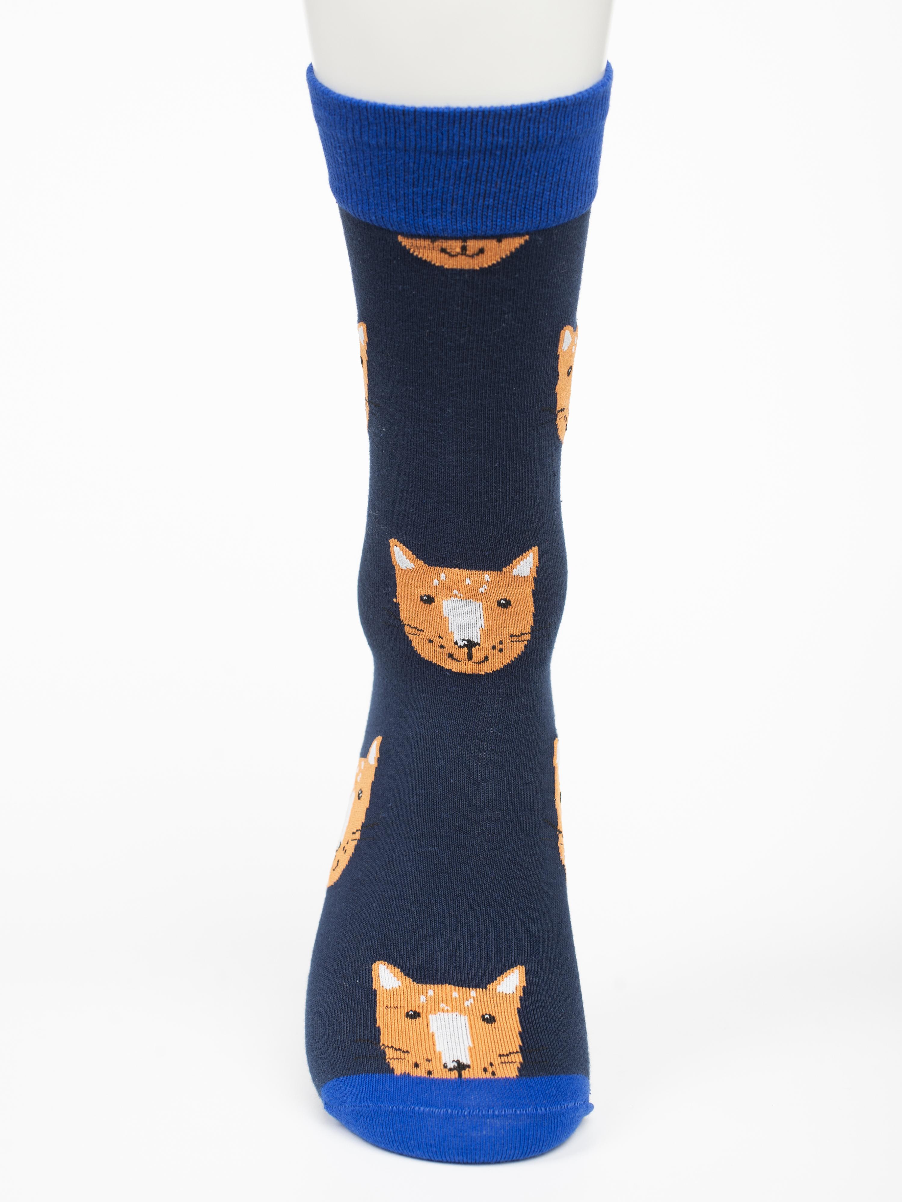Круглогодичные средней длины носки унисекс, цвет темно-синий, с принтом, шов обычный (не бесшовные), принт (рисунок): животные, лиса, контрастные пятка/мысок/резинка, состав: 80% хлопок, 17% полиамид, 3% эластан, арт. PM387. Производитель «Oemen» Китай под брендом «Oemen».