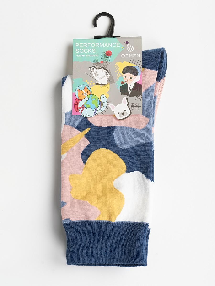 Круглогодичные средней длины носки унисекс, цвет многоцветные (мультиколор), шов обычный (не бесшовные), принт (рисунок): контрастные пятка/мысок/резинка, животные, абстрактный, состав: 80% хлопок, 17% полиамид, 3% эластан, арт. PM393. Производитель «Oemen» Китай под брендом «Oemen».