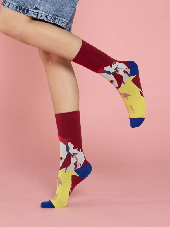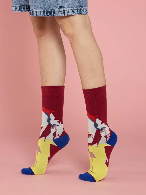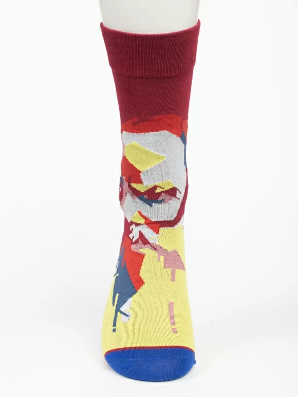 Круглогодичные средней длины носки унисекс, цвет многоцветные (мультиколор), с принтом, шов обычный (не бесшовные), принт (рисунок): контрастные пятка/мысок/резинка, знаменитости, Лев Толстой, абстрактный, состав: 80% хлопок, 17% полиамид, 3% эластан, арт. PM405. Производитель «Oemen» Китай под брендом «Oemen».