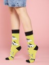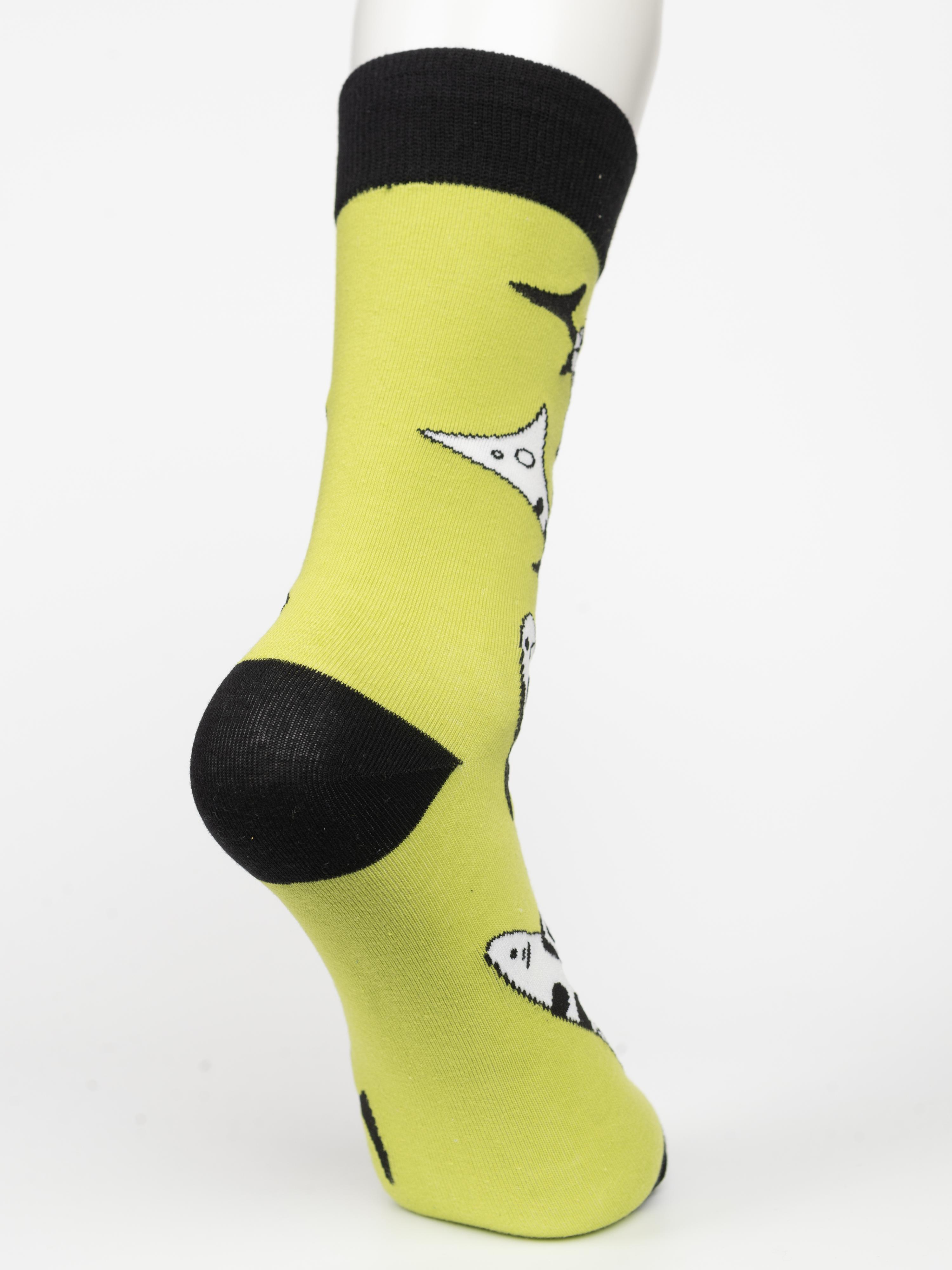 Круглогодичные средней длины носки унисекс, цвет желтый-черный, с принтом, шов обычный (не бесшовные), принт (рисунок): контрастные пятка/мысок/резинка, абстрактный, рыбы, состав: 80% хлопок, 17% полиамид, 3% эластан, арт. PM413. Производитель «Oemen» Китай под брендом «Oemen».