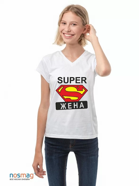 Каждый мужчина в глубине души – Супермен, а его супруга, соответственно – Супержена. Эта удобная футболка с V-образным вырезом изготовлена из гребенного длинноволокнистого хлопка, плотностью 160 г/м2.