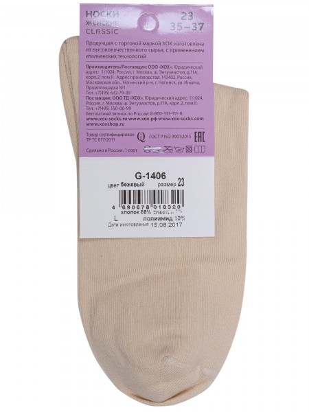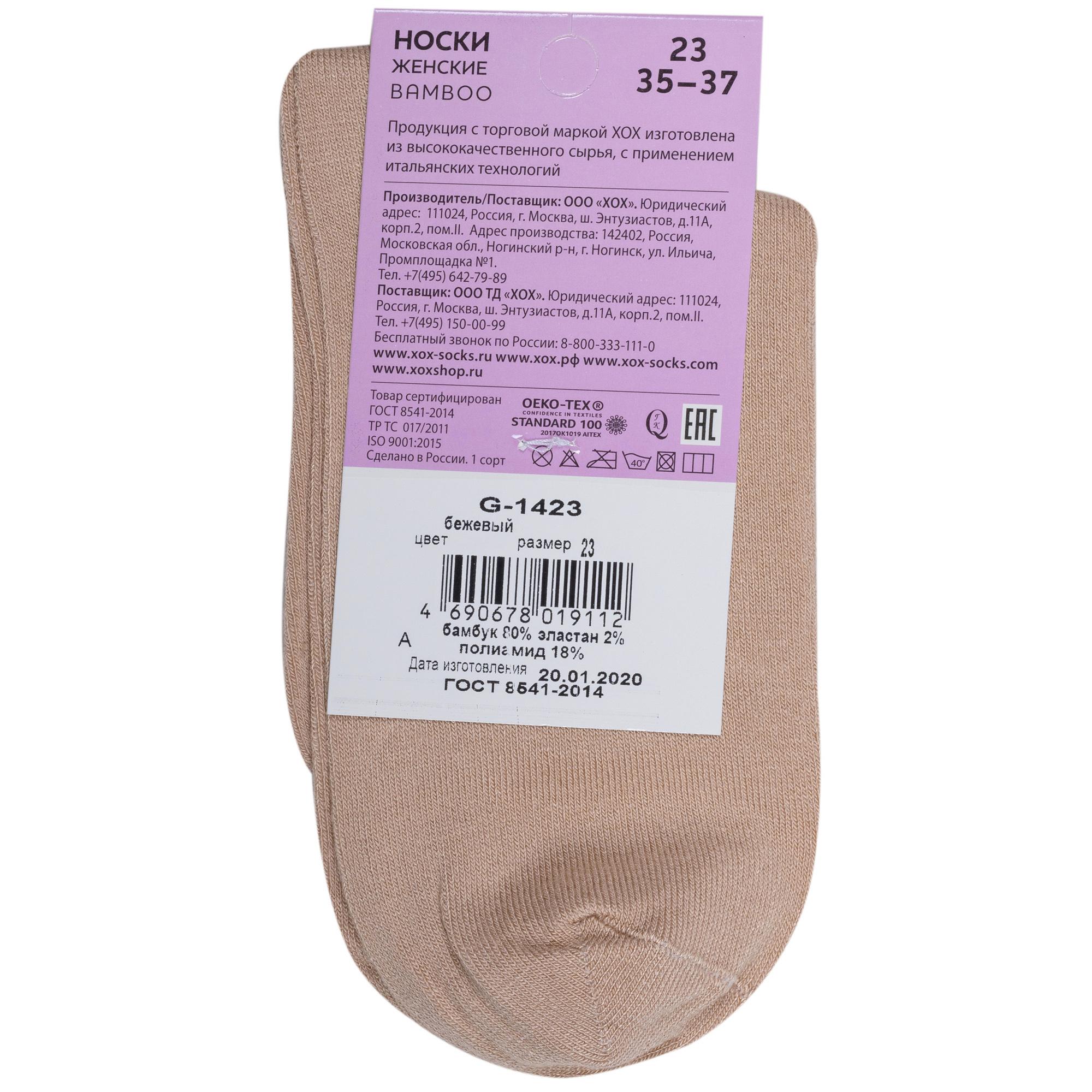 Женские бамбуковые носки без резинки ХОХ G-1423, БЕЖЕВЫЕ