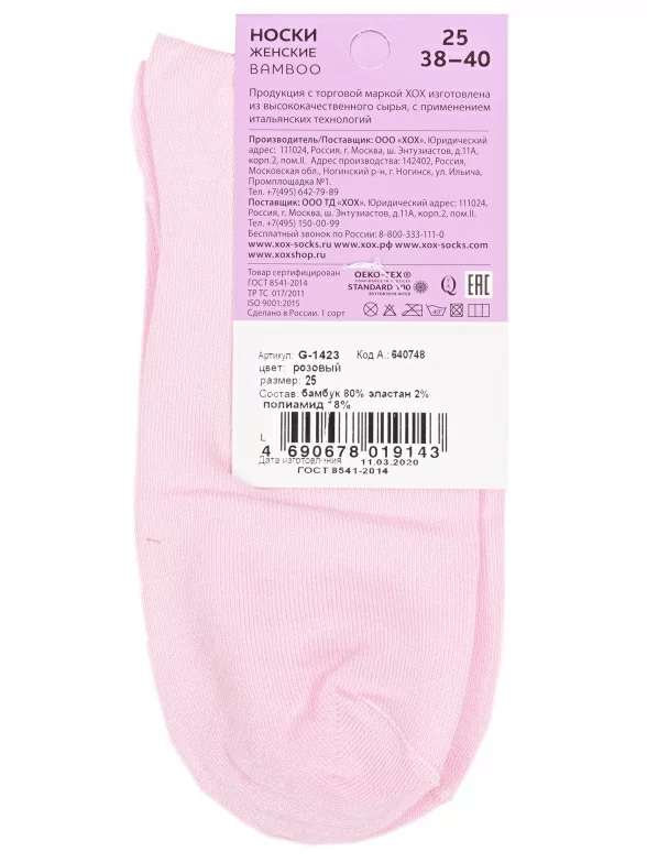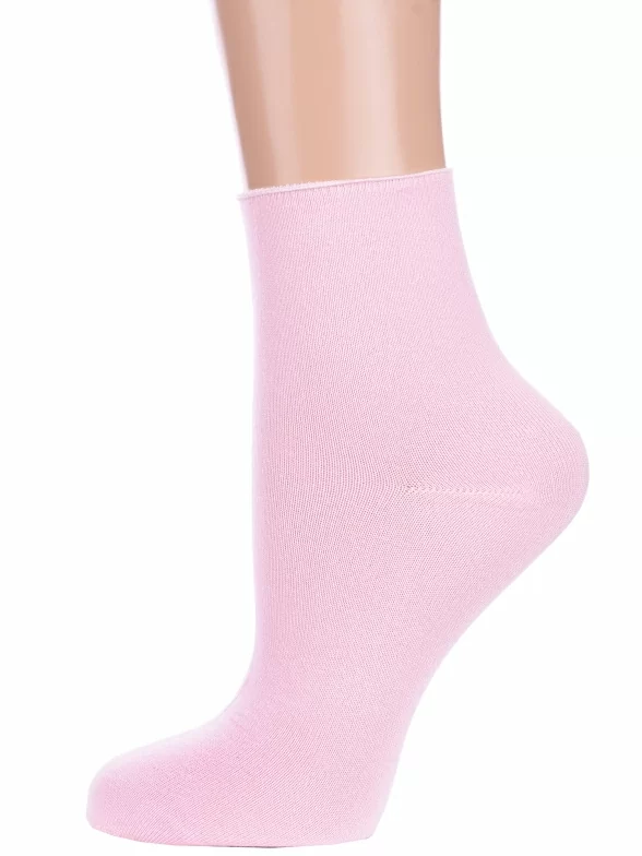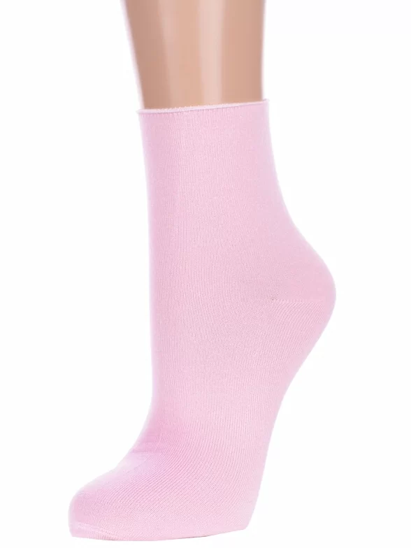 Круглогодичные укороченные женские носки, цвет розовый, повседневные, медицинские, шов кеттельный (бесшовная технология), принт (рисунок): однотонный, без рисунков/узоров, состав: 80% бамбук, 18% полиамид, 2% эластан, арт. G-1423. Производитель «ХОХ» Россия под брендом «Хох».