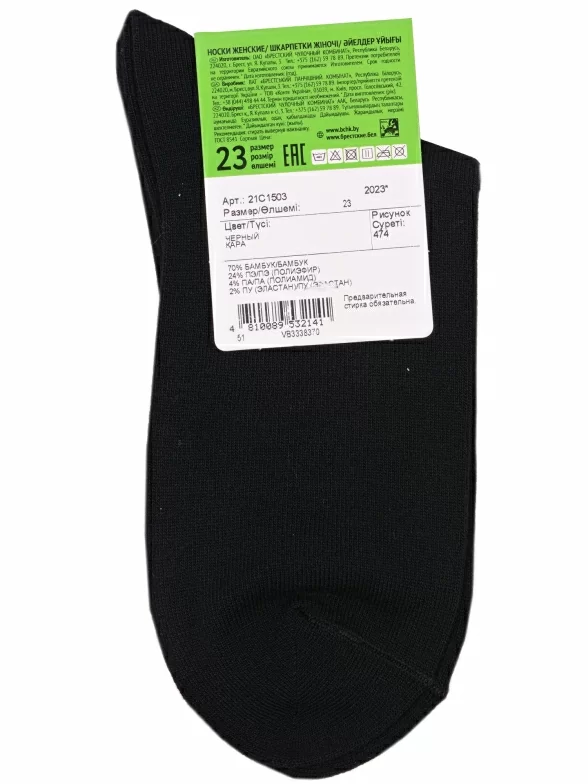 Женские бамбуковые носки Брестские (БЧК), 21C1503, рис. 474, ЧЕРНЫЕ