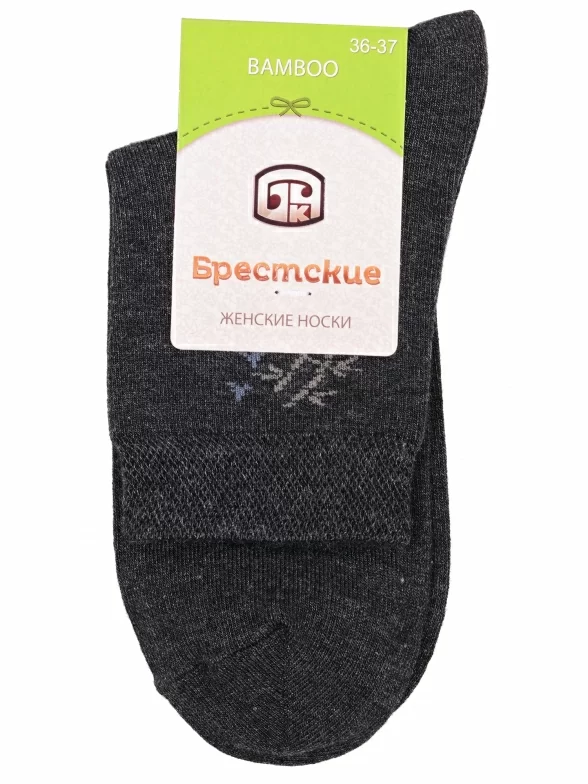 Межсезонные или летние укороченные женские носки, цвет темно-серый, повседневные, шов обычный (не бесшовные), принт (рисунок): с узором, состав: 70% бамбук, 24% полиэстер, 4% полиамид, 2% эластан, арт. 21C1503. Производитель «Брестский чулочный комбинат ОАО, Беларусь» под брендом «Брестские (бчк)».