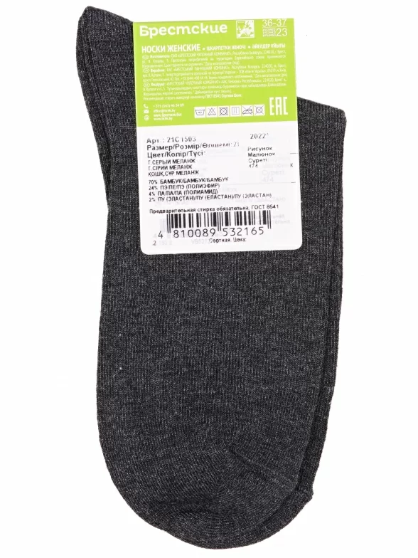 Женские бамбуковые носки Брестские (БЧК), 21C1503, рис. 474, ТЕМНО-СЕРЫЕ МЕЛАНЖ