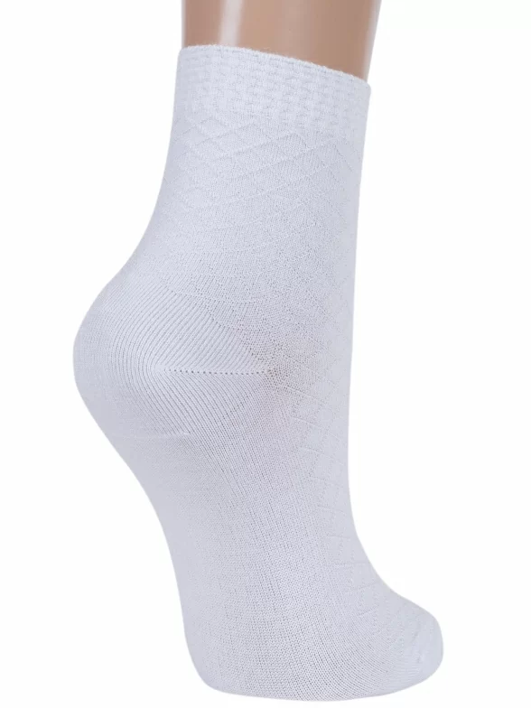 Однотонные женские носки с узором в ромбик. Сделаны из экологичного бамбукового волокна с небольшим добавлением эластана для комфортной посадки.