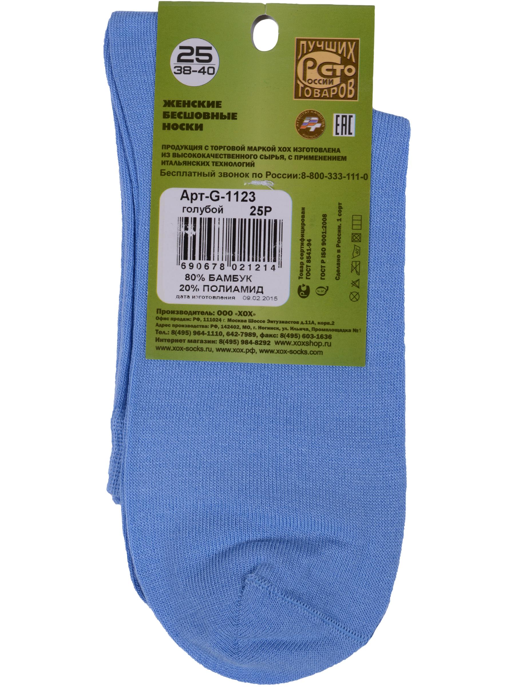 Летние укороченные женские носки, цвет голубой, классические, шов кеттельный (бесшовная технология), принт (рисунок): без рисунков / узоров, однотонный, состав: 80% бамбук, 20% полиамид, арт. G-1123. Производитель «ХОХ» Россия под брендом «Хох».