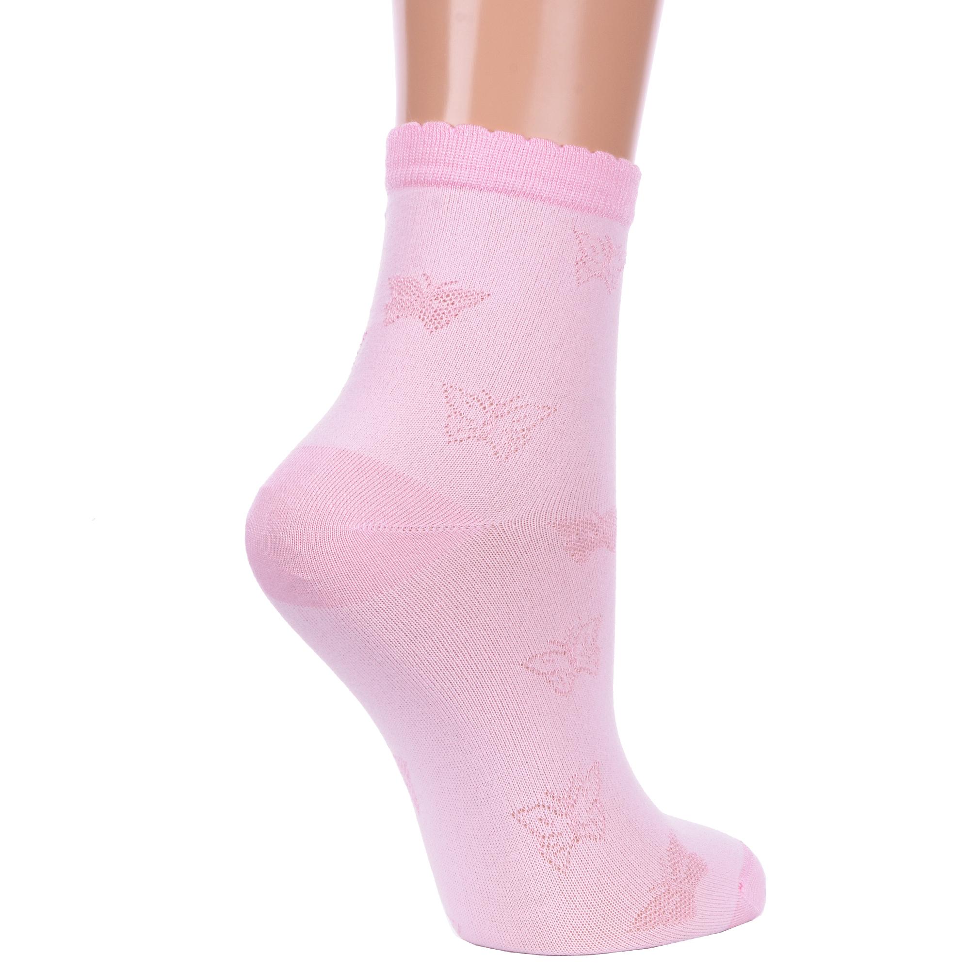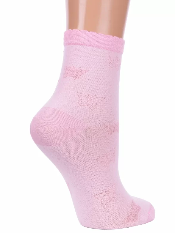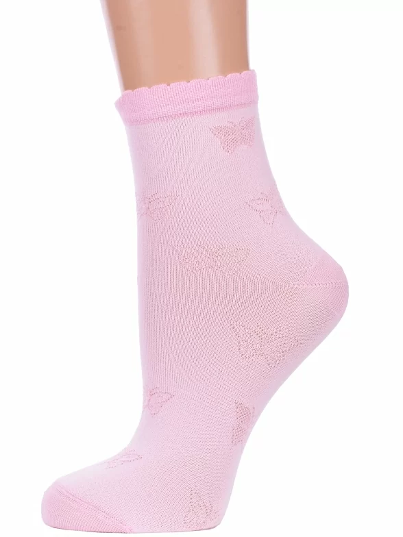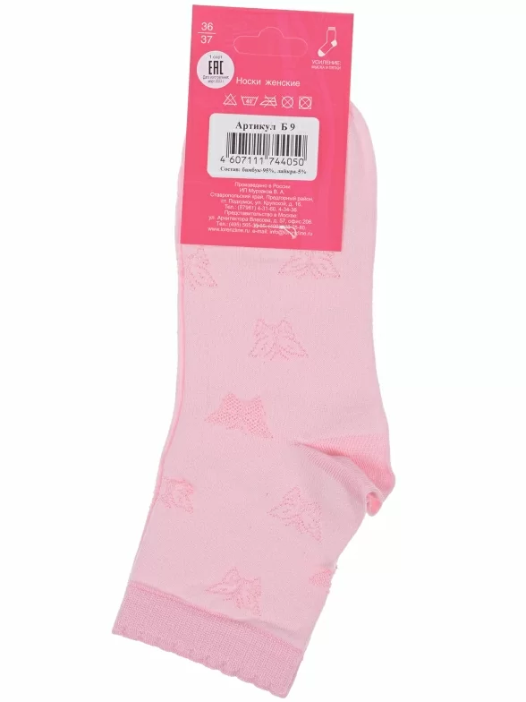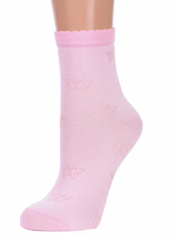 Летние укороченные женские носки, цвет розовый, ажурные, шов кеттельный (бесшовная технология), принт (рисунок): бабочки / бантики, с узором, состав: 95% бамбук, 5% лайкра, арт. Б9. Производитель «ИП Мурзаков В.А., Ставропольский край, Россия» под брендом «Lorenzline».