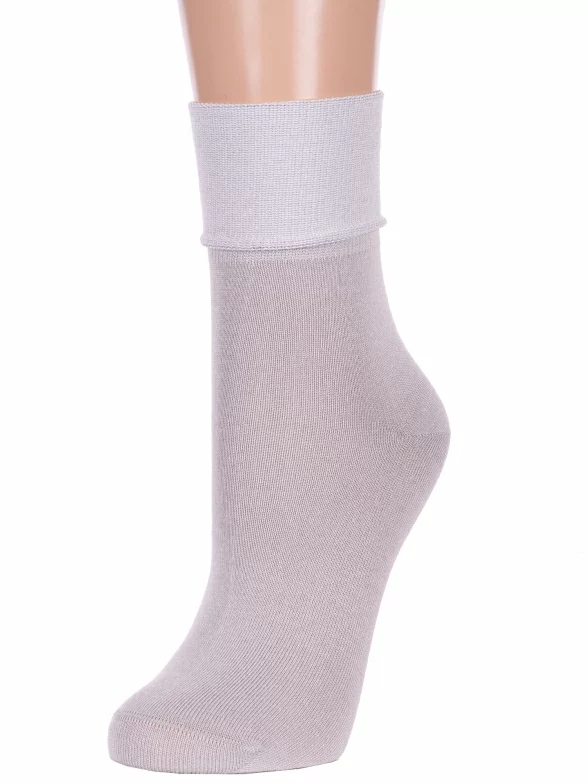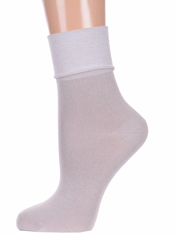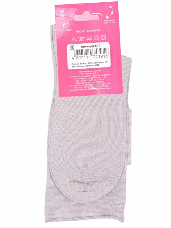 Межсезонные или летние укороченные женские носки, цвет серый, с отворотом, классические, шов плоский, принт (рисунок): однотонный, без рисунков/узоров, состав: 90% бамбук, 10% полиамид, арт. Б10. Производитель «ИП Мурзаков В.А., Ставропольский край, Россия» под брендом «Lorenzline».
