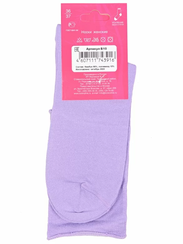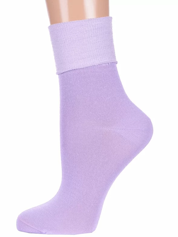 Межсезонные или летние укороченные женские носки, цвет сиреневый, с отворотом, классические, шов плоский, принт (рисунок): однотонный, без рисунков/узоров, состав: 90% бамбук, 10% полиамид, арт. Б10. Производитель «ИП Мурзаков В.А., Ставропольский край, Россия» под брендом «Lorenzline».