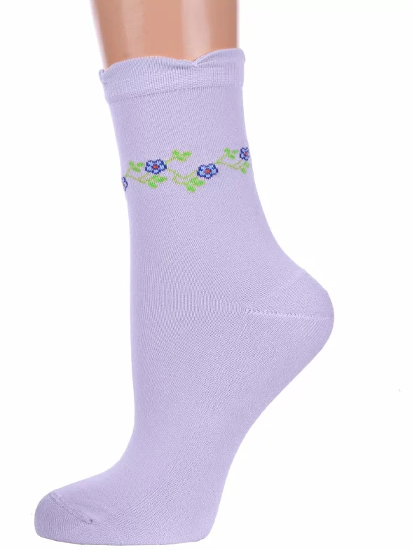 Межсезонные средней длины женские носки, цвет сиреневый, повседневные, с махровым следом, шов обычный (не бесшовные), принт (рисунок): цветы / растения, состав: 95% бамбук, 5% лайкра, арт. Б8. Производитель «ИП Мурзаков В.А., Ставропольский край, Россия» под брендом «Lorenzline».