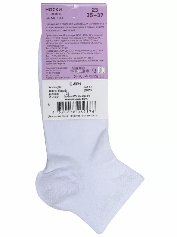 Женские бамбуковые спортивные носки в сеточку ХОХ, G-5R1, БЕЛЫЕ