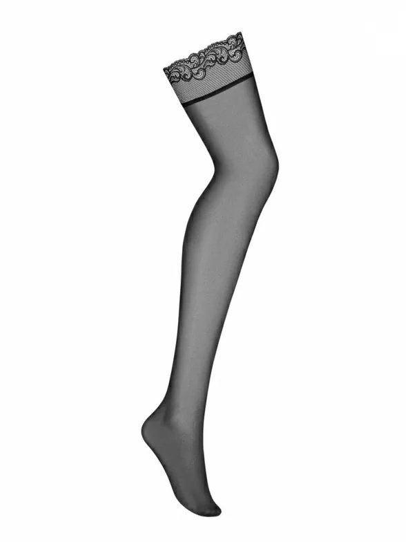 Тонкие тёмные чулки под пояс, отличающиеся необычным дизайном коронки, создающим акцент на бёдрах. Они сделаны из высококачественного европейского сырья и отлично смотрятся со стрингами, пеньюарами и корсетами.