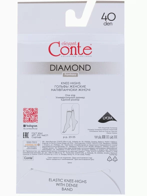 Женские гольфы Conte, 21С-146СП DIAMOND, Nero, черные
