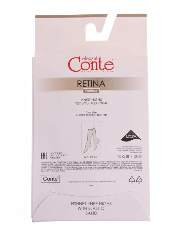 Женские гольфы, цвет черный, в сеточку, принт (рисунок): однотонный, состав: 79% полиамид, 21% эластан, арт. 23С-45СП/RETINA. Производитель «Conte, Беларусь» под брендом «Conte».